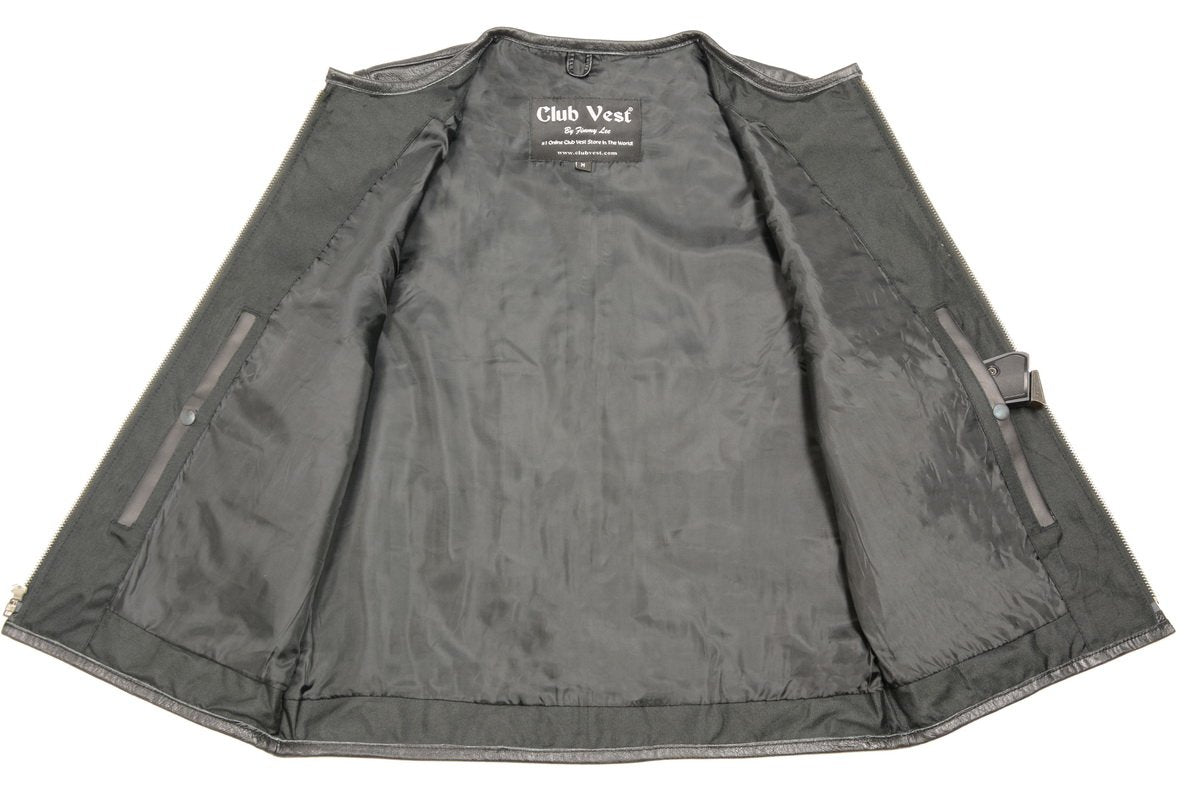 Club Vest CVM3740 Mens Black Seamless Front and Back Design Leather Vest with Conceal and Carry Pockets