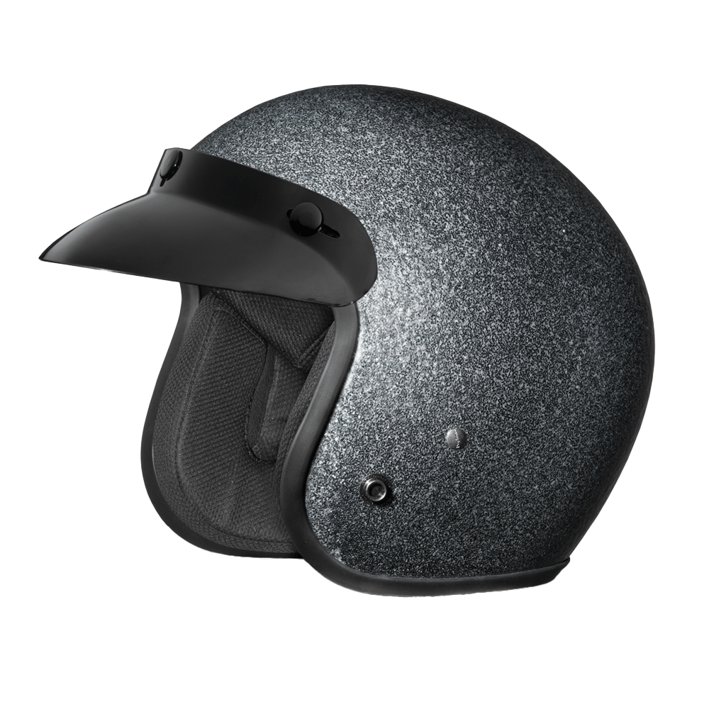 Our D.O.T. Daytona Cruiser 3/4 Shell Helmet In The Gun Metal Flake, Meets And Exceeds D.O.T. FMVSS 218 Standards And Is The Smallest D.O.T. 3/4 Shell Helmet Ever Made!! With 3 Different Shell Sizes, You're Sure To Get That Proportionate Fit!! Available Only With Removable, Snap On Gloss Black Bubble Visor. Many More Colors And Designs Available Such As Soft Touch Dull Black, Hi-Gloss Black And Hi-Gloss White; Custom Colors: Gun Metal Grey Metallic; Specialty Items: Graphics. Head Wrap And Cloth Draw String Bag Included. Sizes Range From XS-2XL.