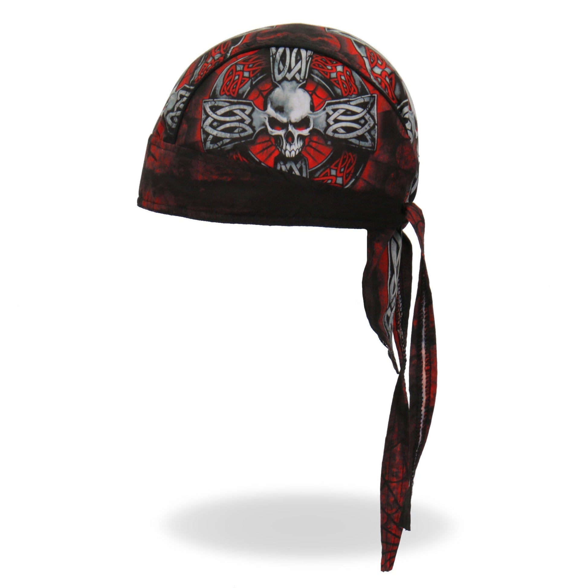 Whether you're hitting the road for a joyride on your motorcycle, getting together with your club, or just need some UV protection and sweat control, Hot Leathers premium doo rag head wraps are just what you need! Put on your new headwrap bandana while you run errands or handle some yard work. Represent your unique style with our moisture wicking, mesh lined head wraps, showcasing bright, long lasting designs sure to turn heads! This head wrap features our original red, gray and black Celtic cross and skull design.