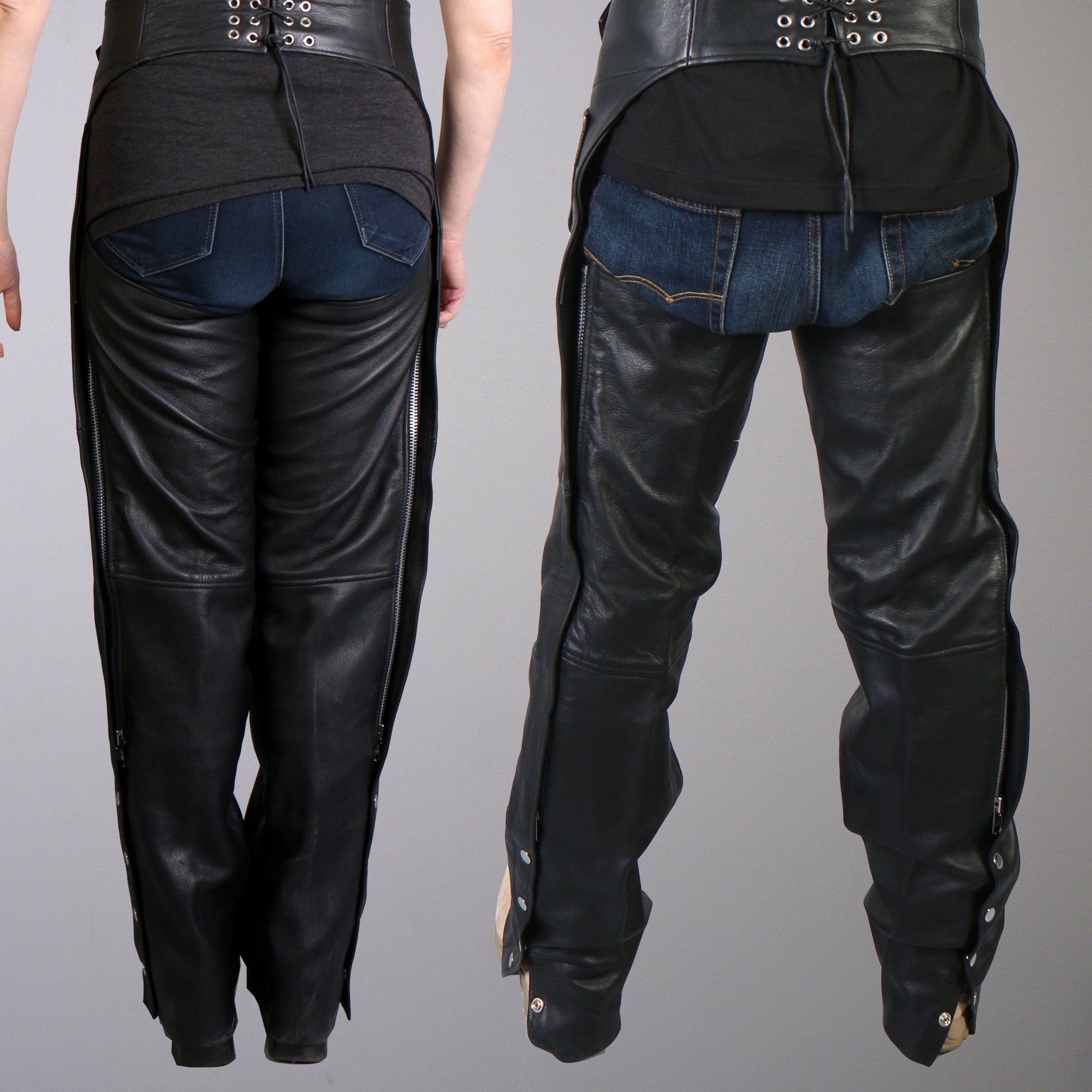 Hot Leathers CHM1005 Best Quality Fully Lined Motorcycle Unisex Black Leather Biker Chaps