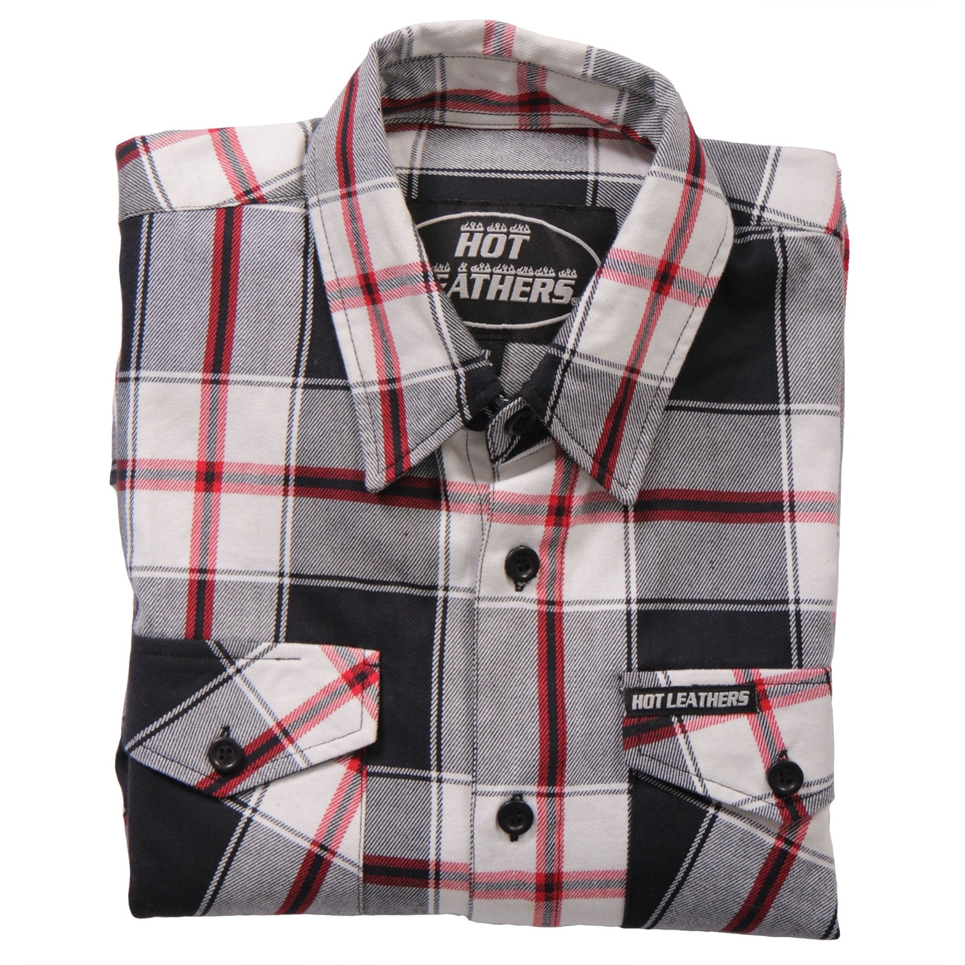 Hot Leathers FLM2003 Mens Black White and Red Long Sleeve Flannel Shirt