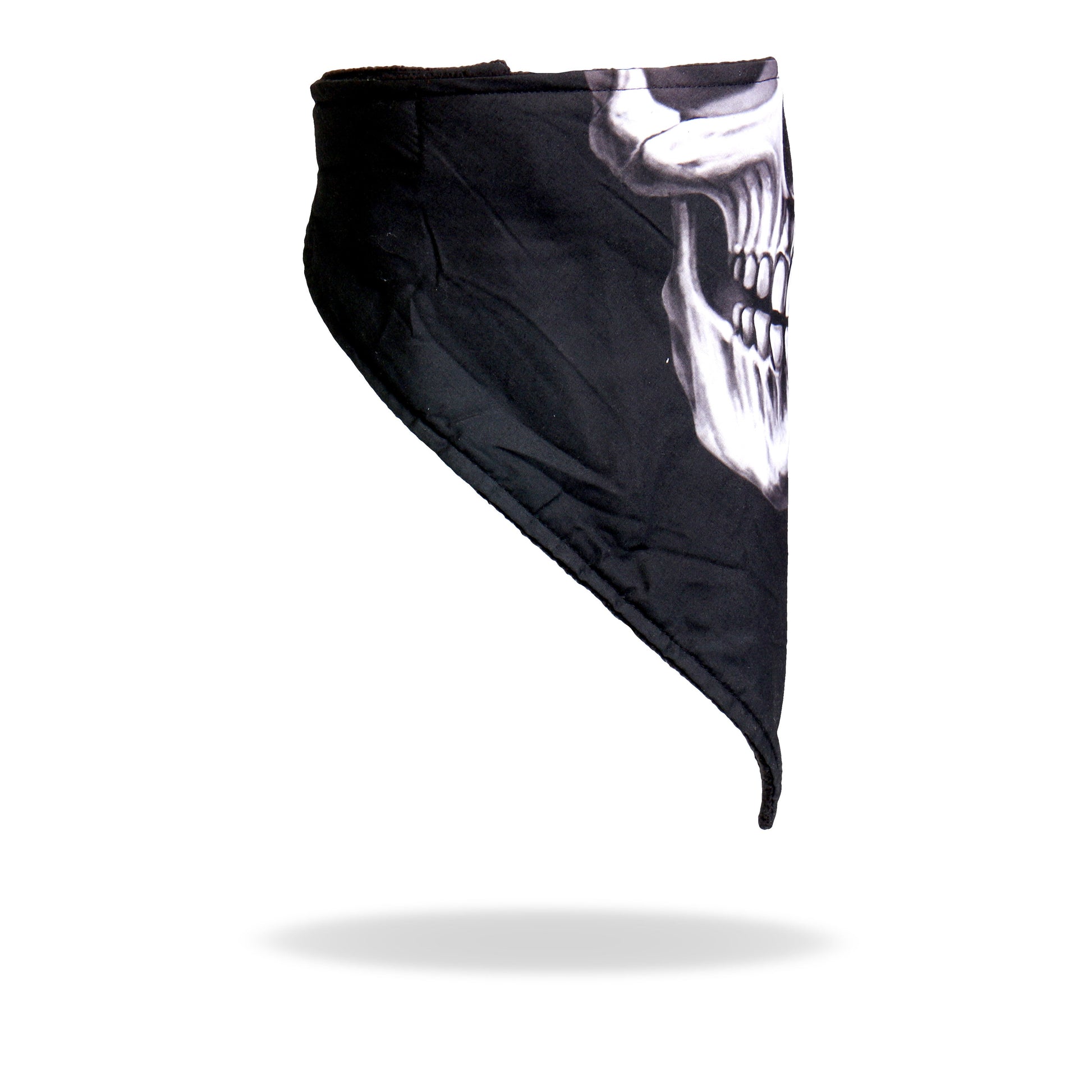 One size fits most, heavyweight triangle fleece-lined neck warmer featuring an original human skull design on the front perfect looking your biker best whenever you hit the road. Represent the lifestyle authentically with this rider must have!