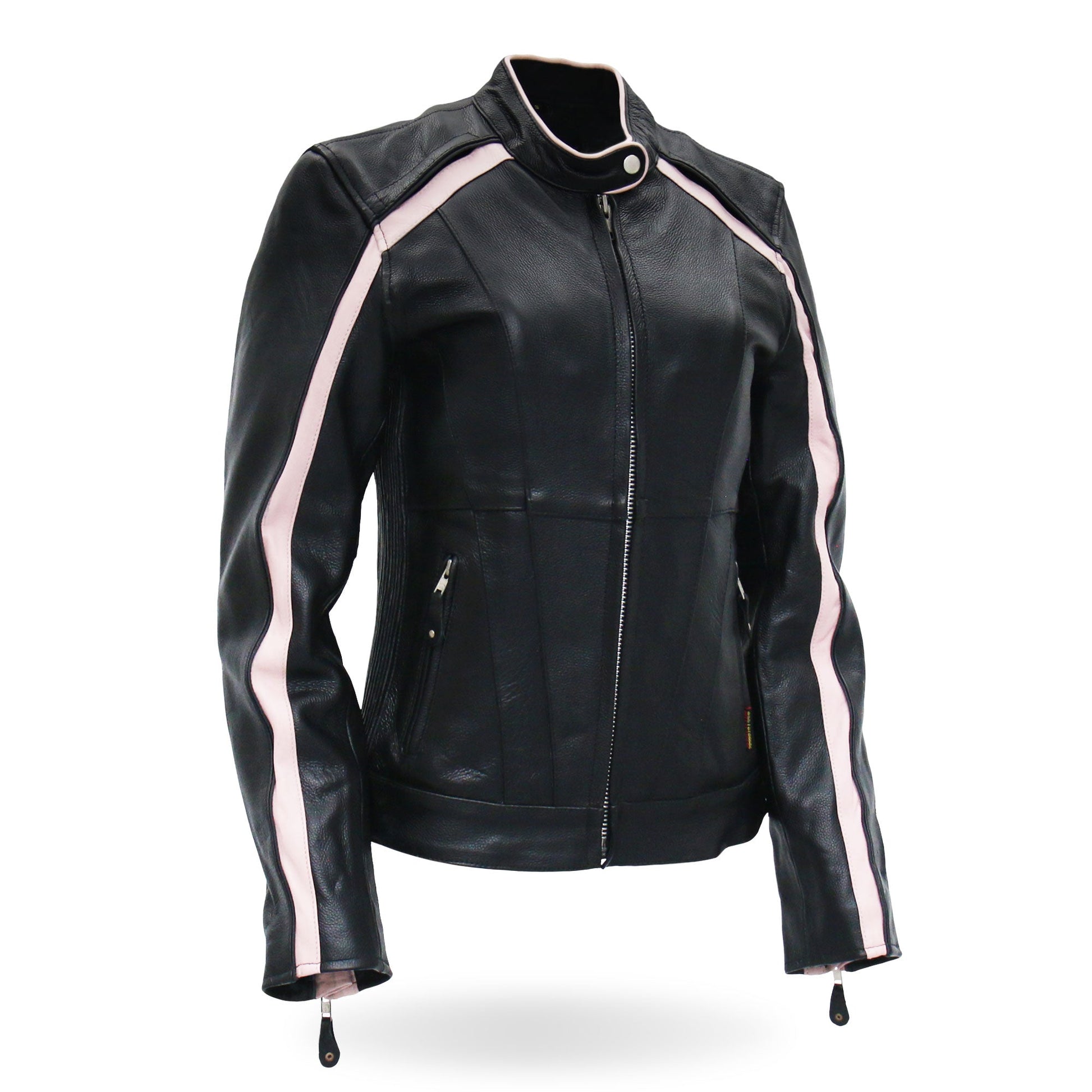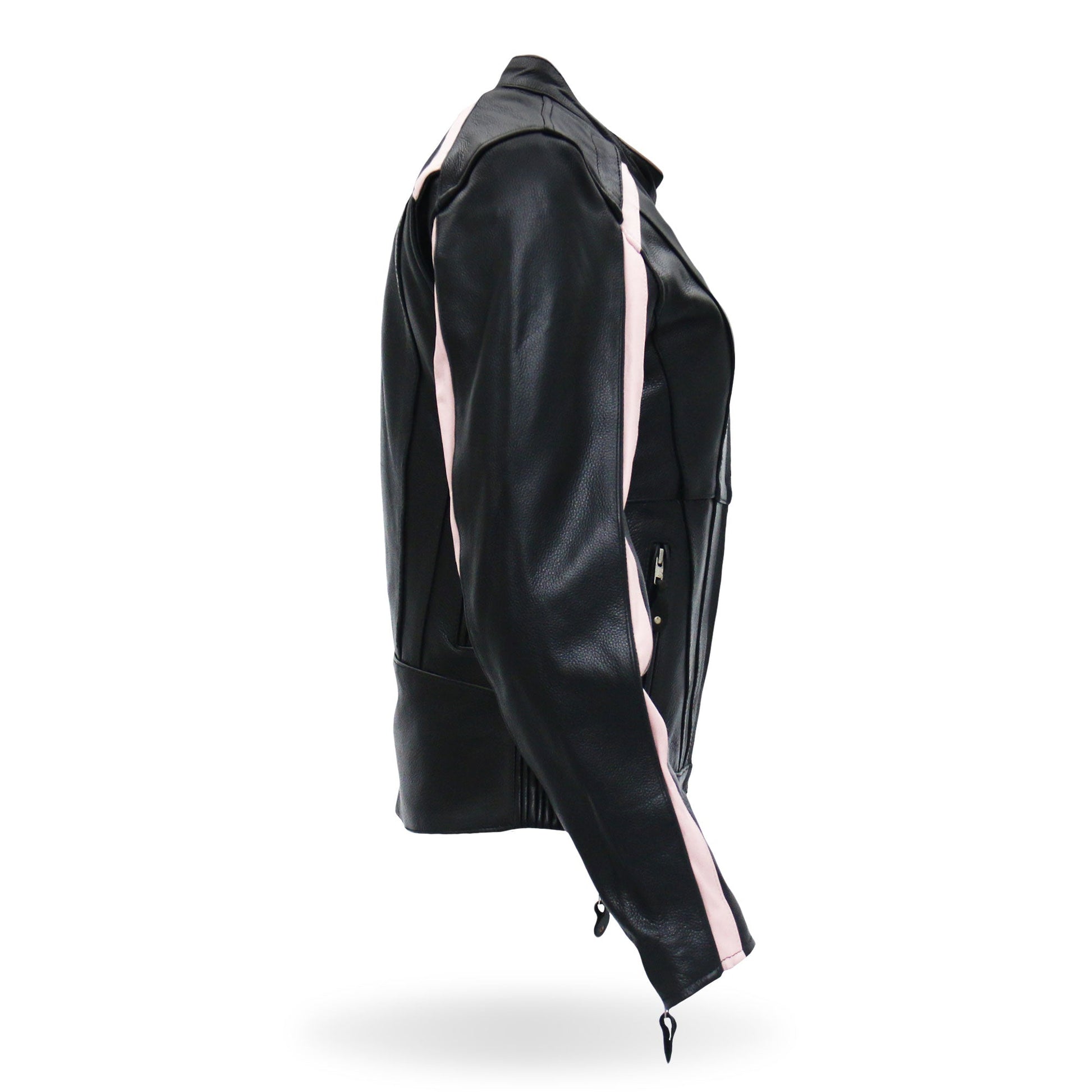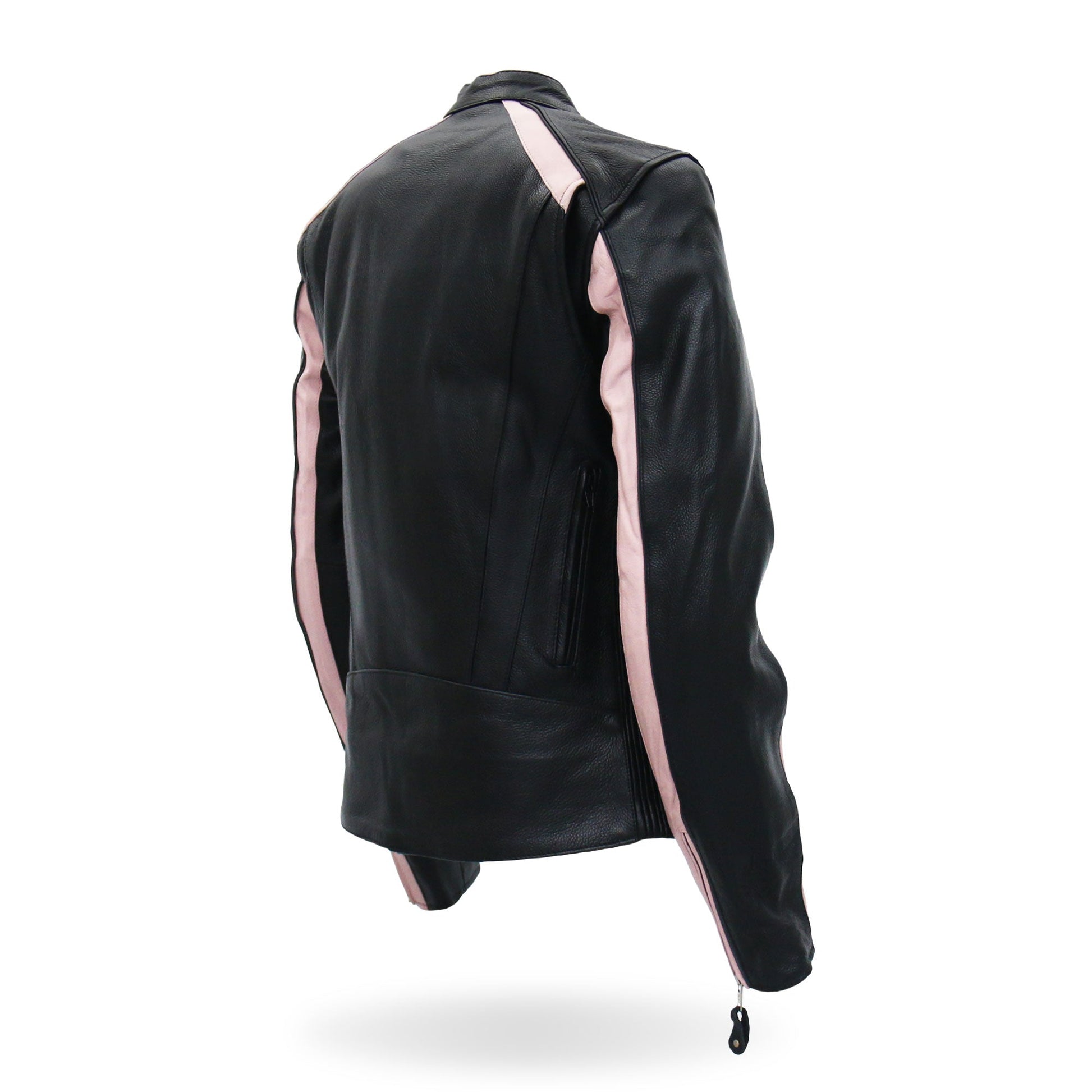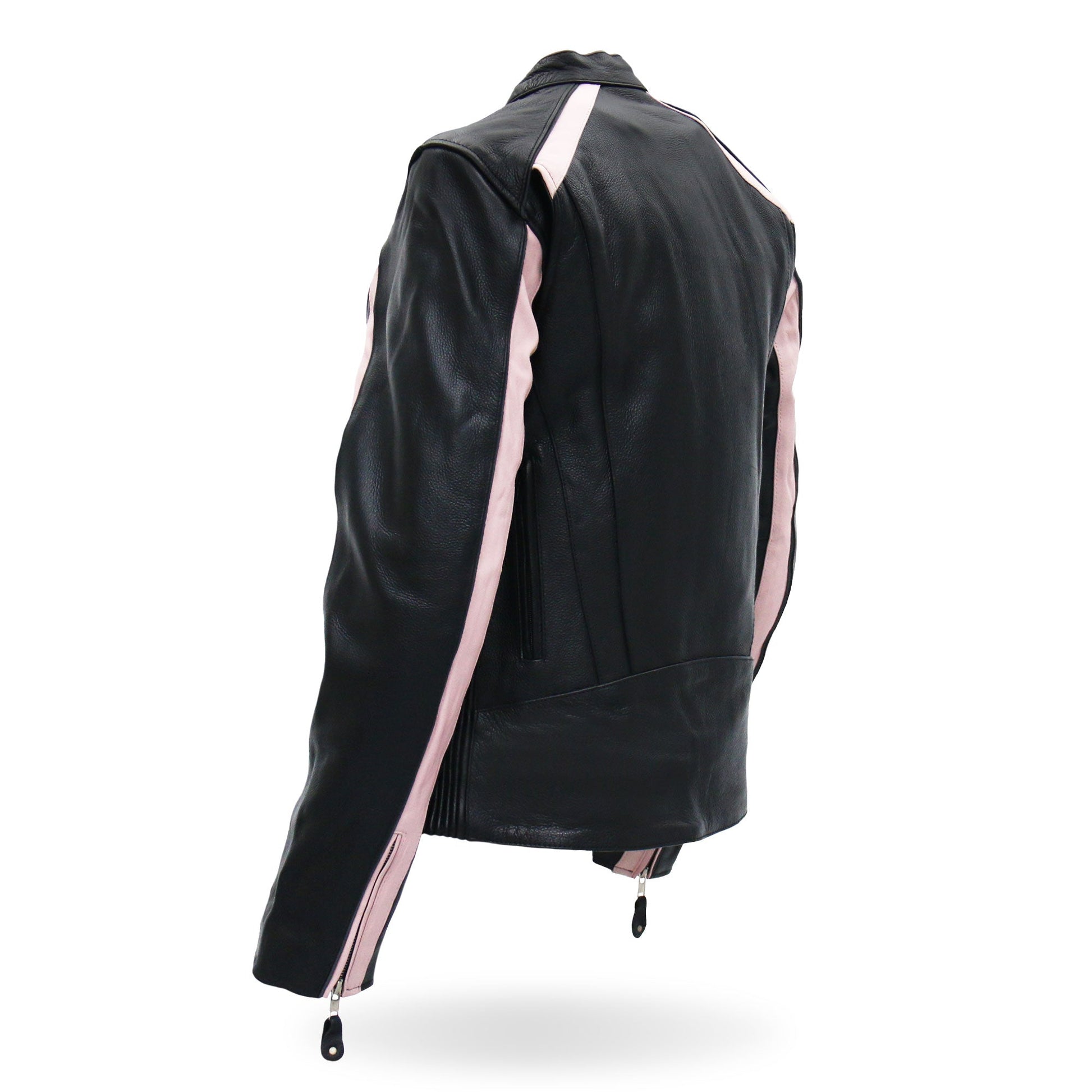 Hot Leathers JKL1022 Pink Striped Motorcycle Leather Biker Jacket with Reflective Piping