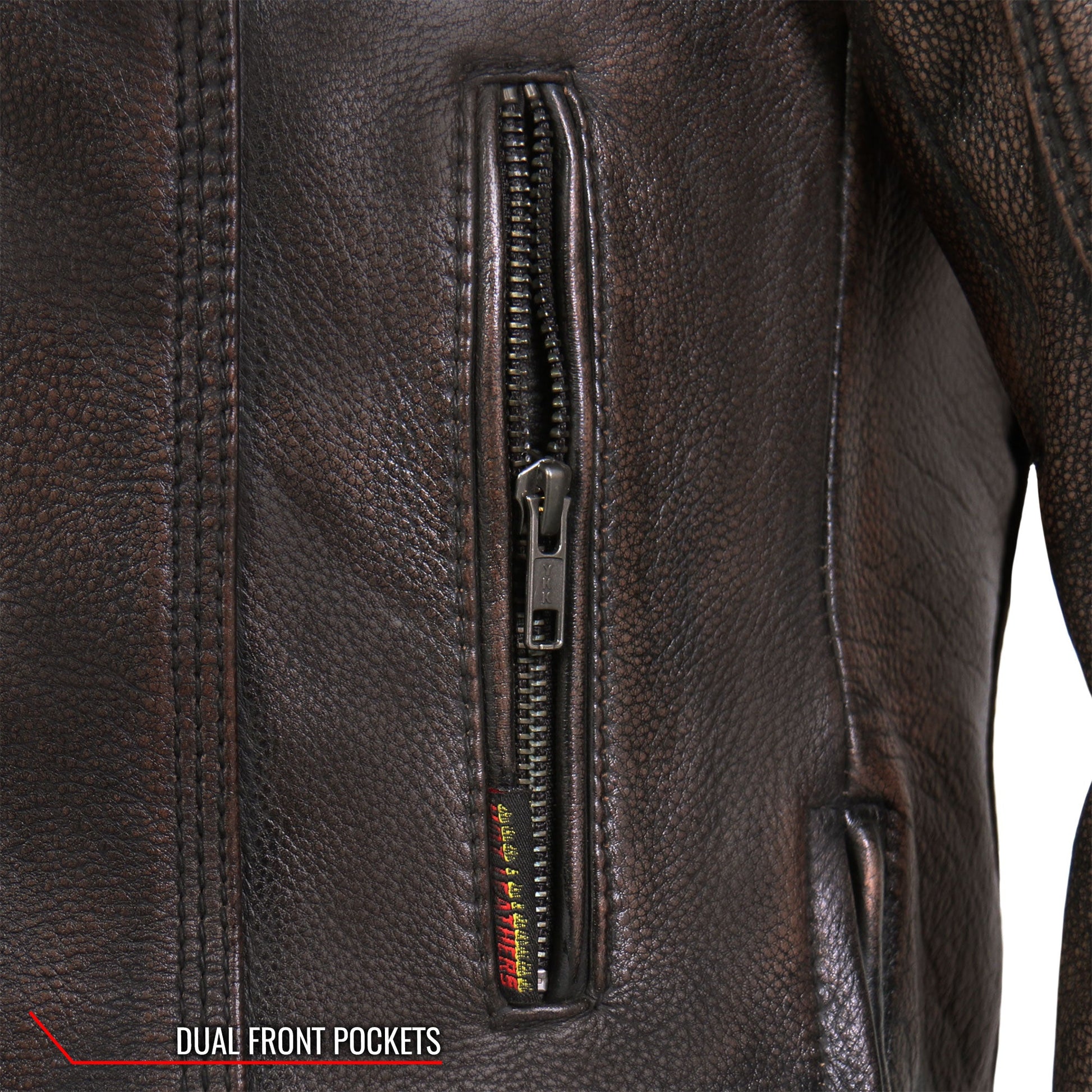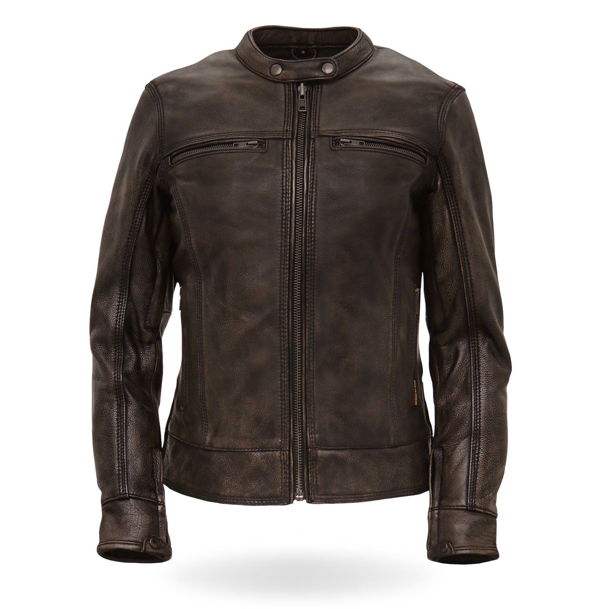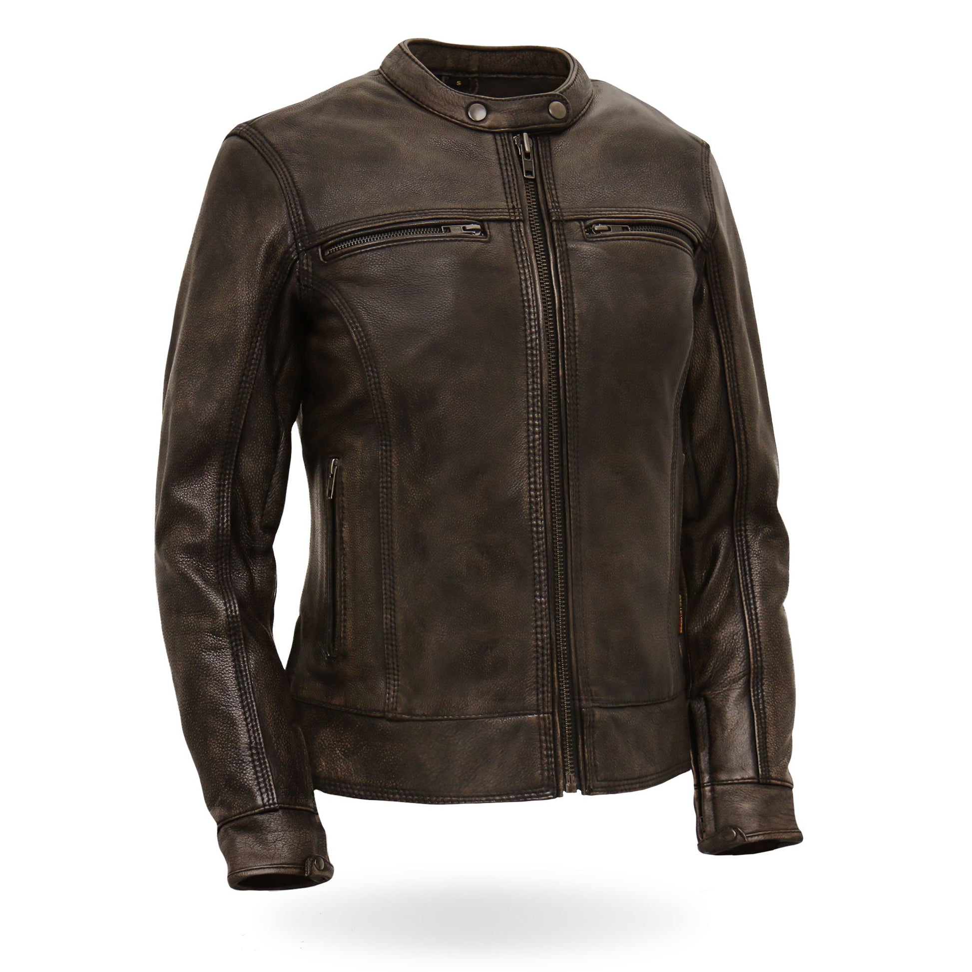 Hot Leathers JKL1024 Ladies Distressed Brown Motorcycle Leather Biker Jacket with Concealed carry Pockets