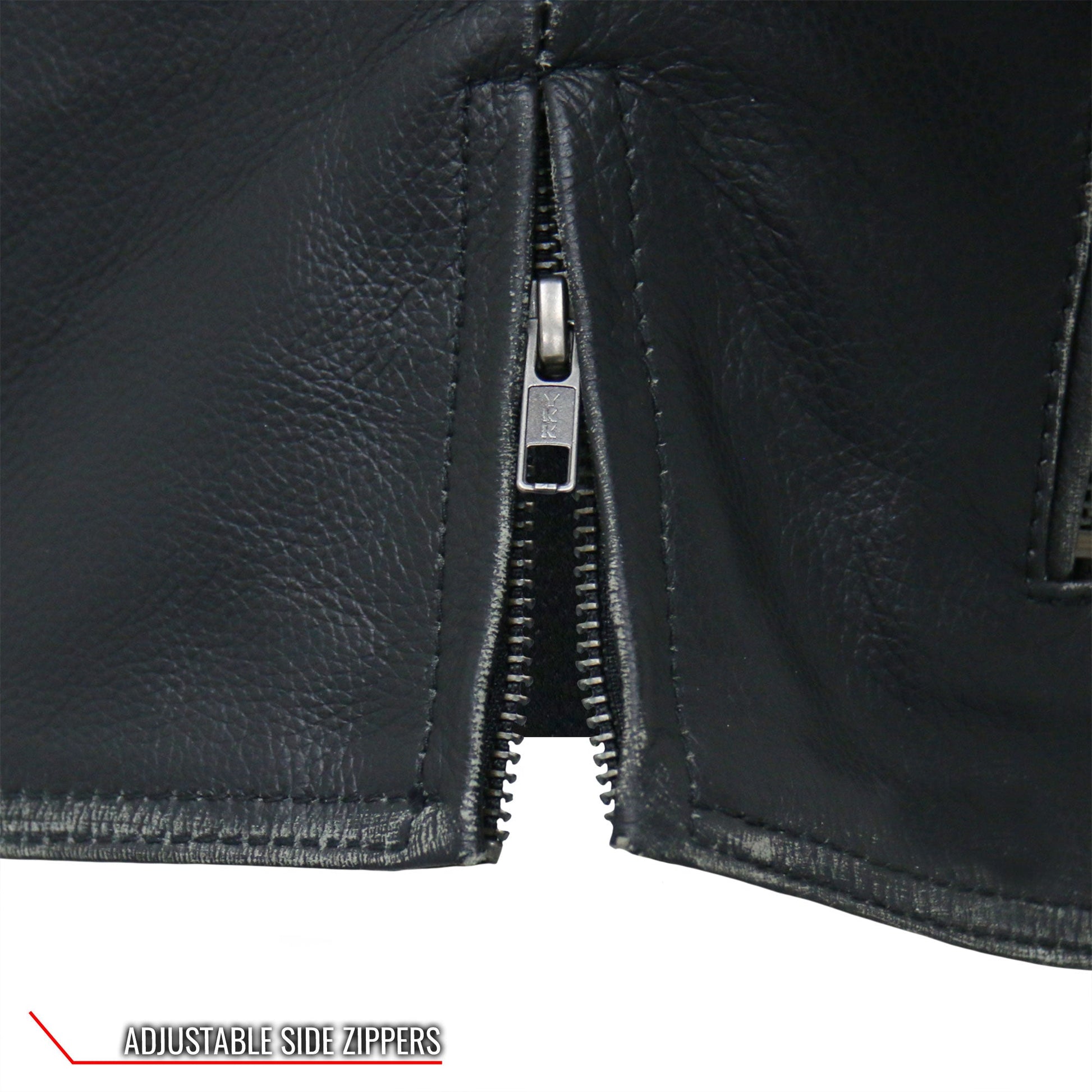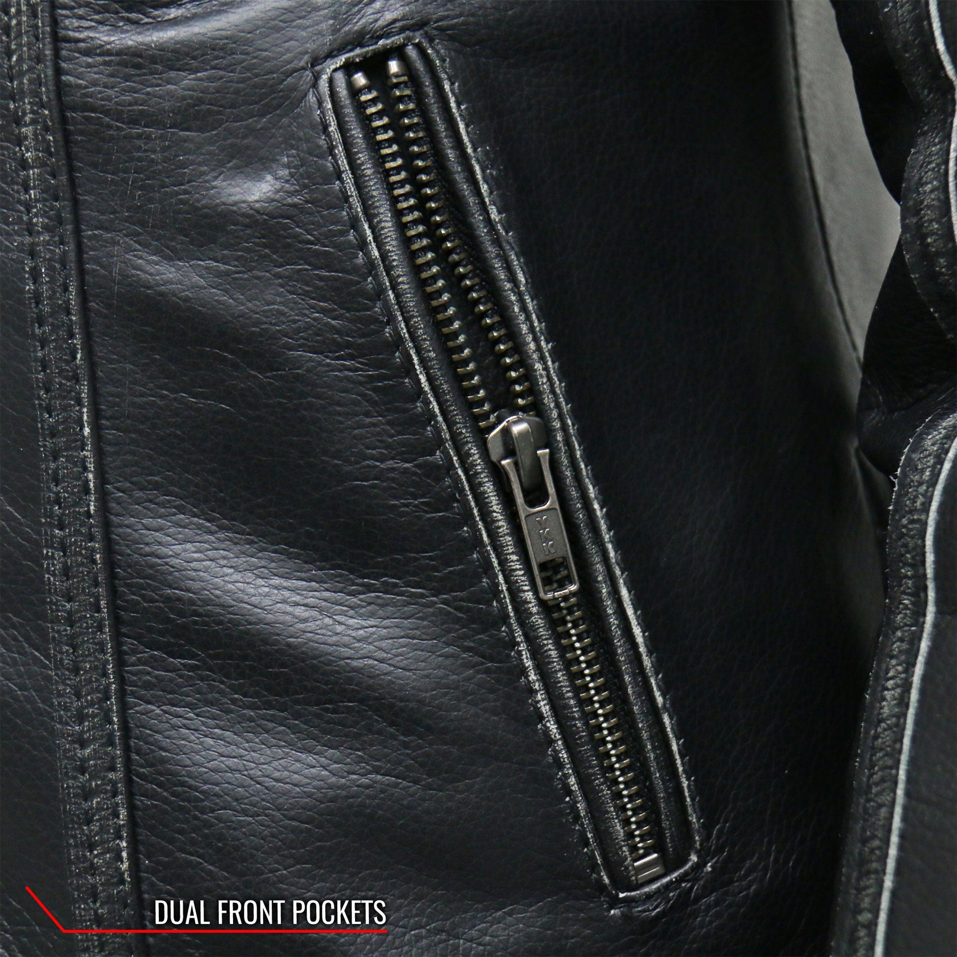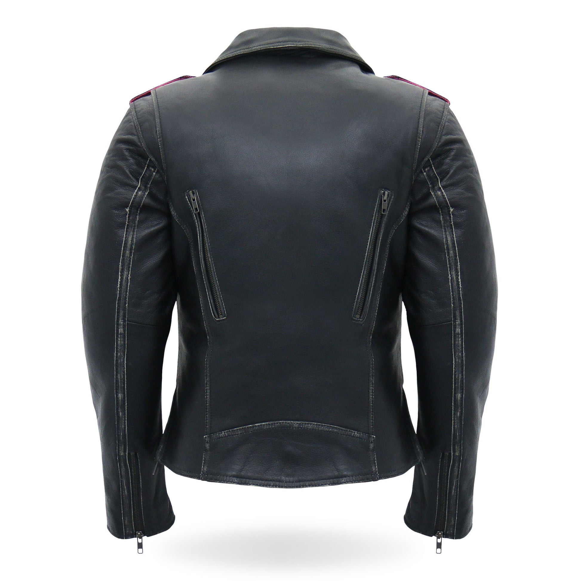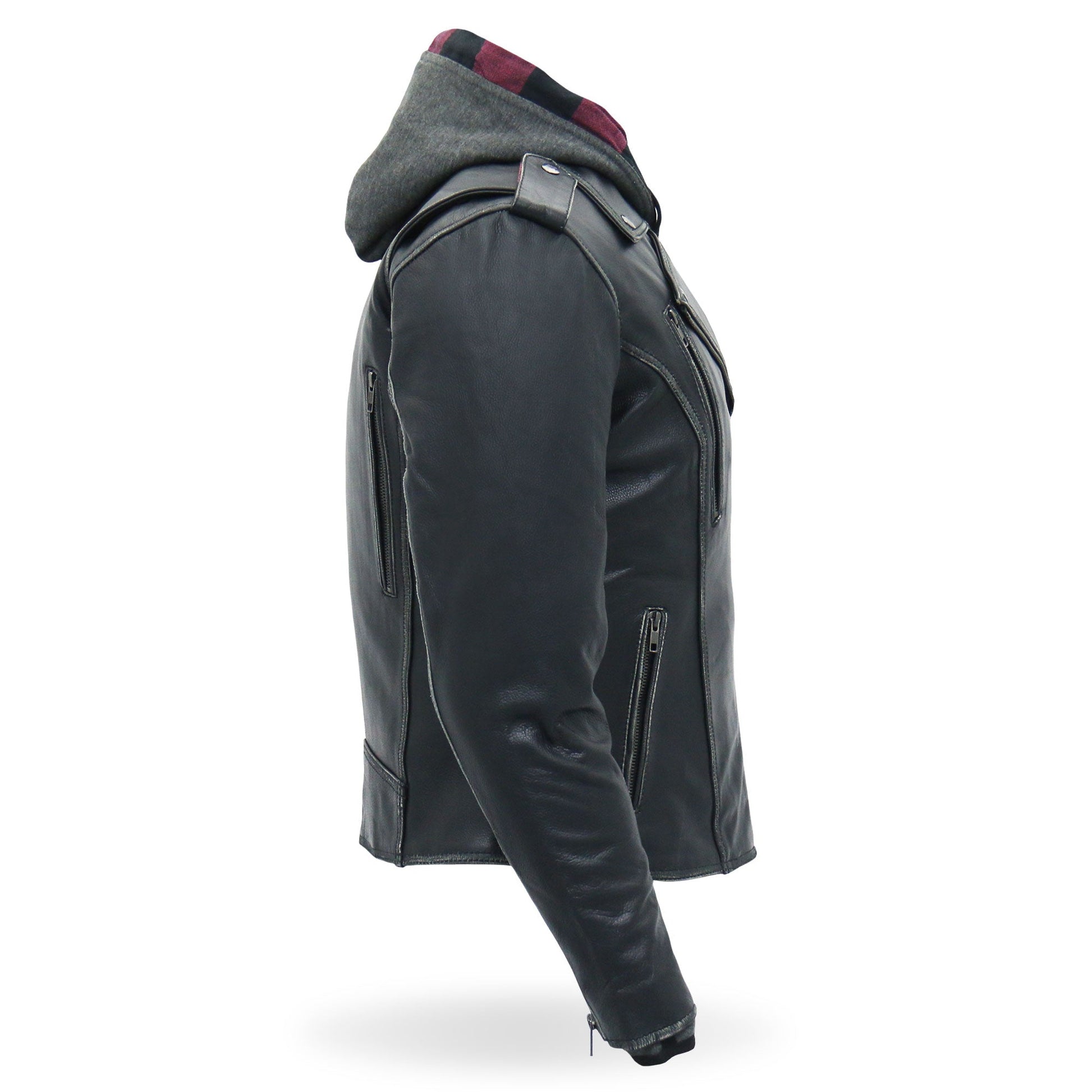 Hot Leathers JKL1033 Ladies Biker Black Leather Motorcycle Jacket with Removable Hoodie