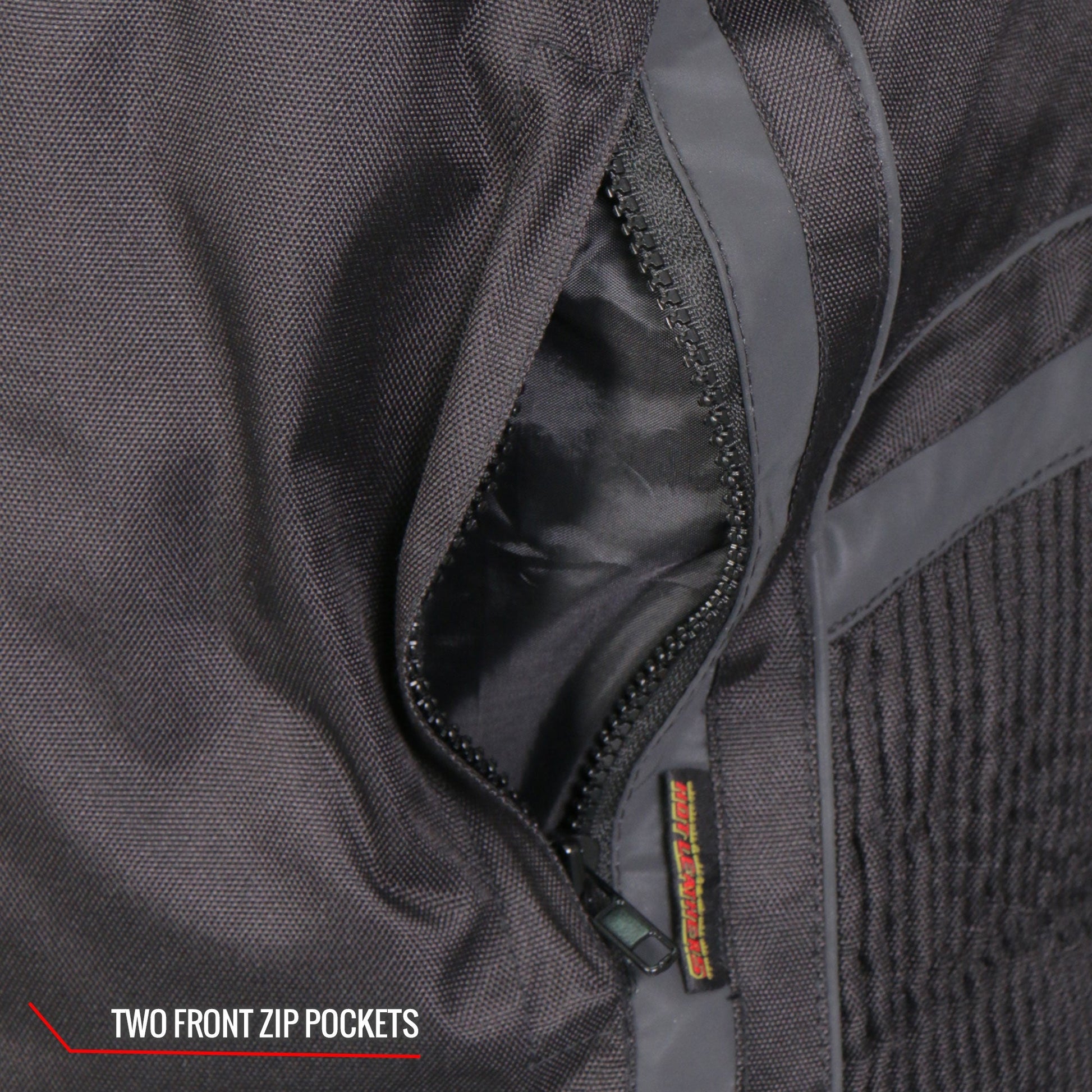- Two front zip pockets