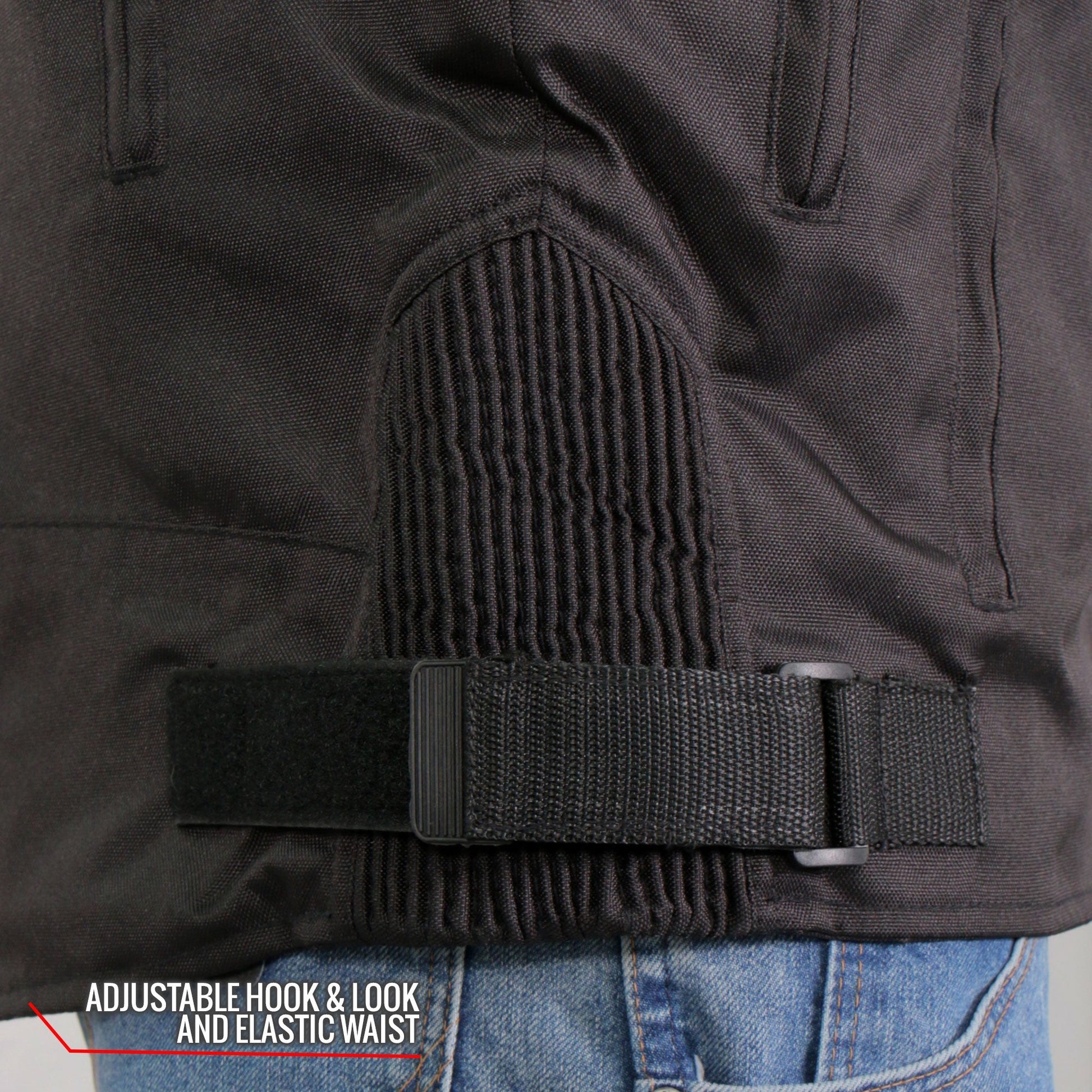 Hot Leathers JKM1026 Men’s Black Motorcycle style Nylon Biker Jacket with Orange Reflective Trim