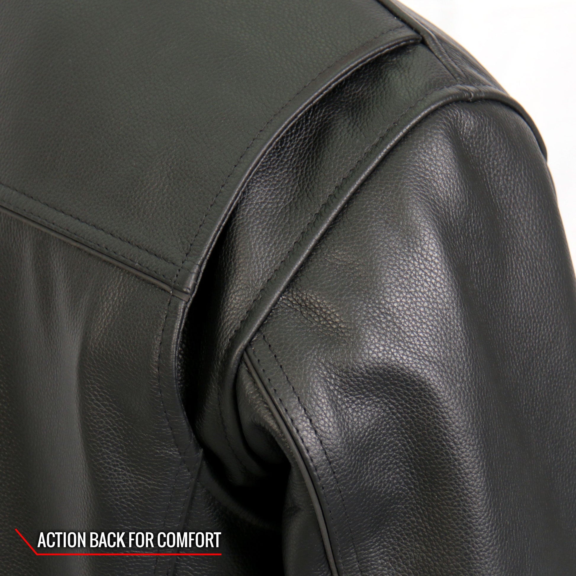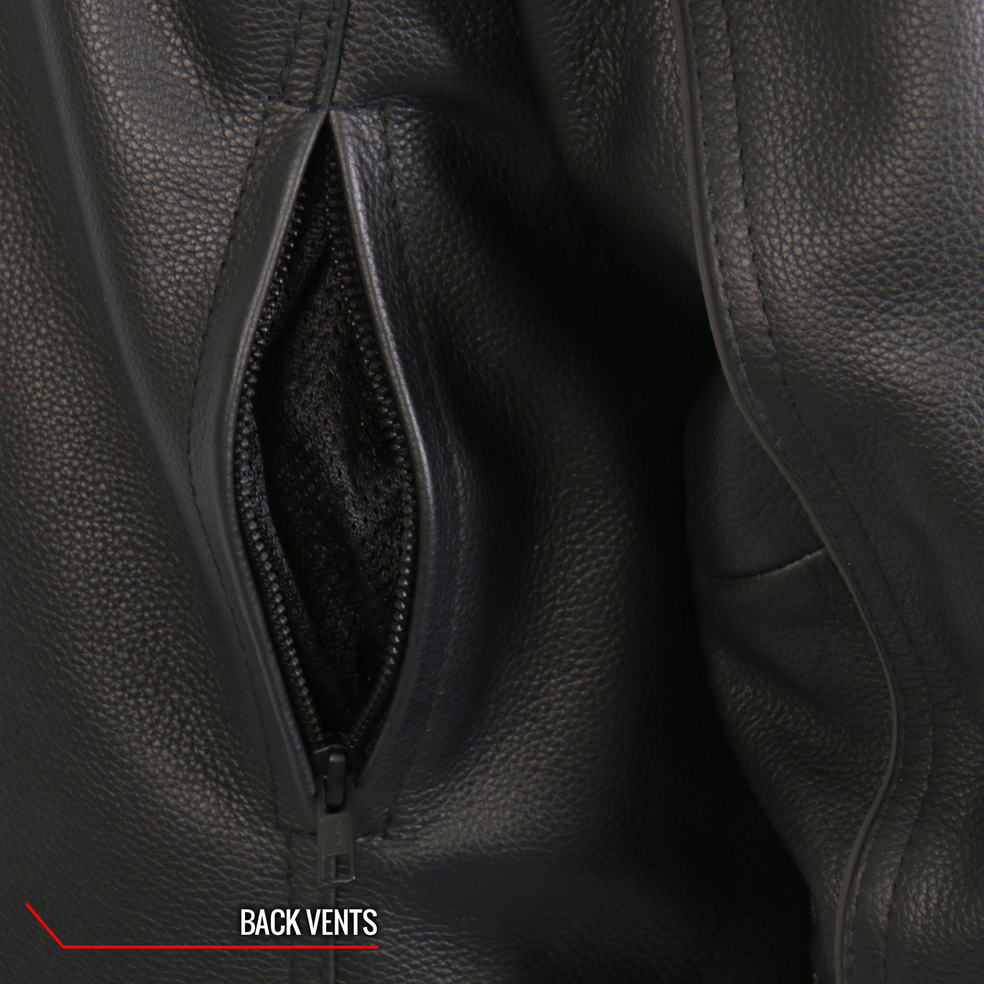 Hot Leathers JKM1028 Men's Black Leather MC Jacket with Zip Out Lining