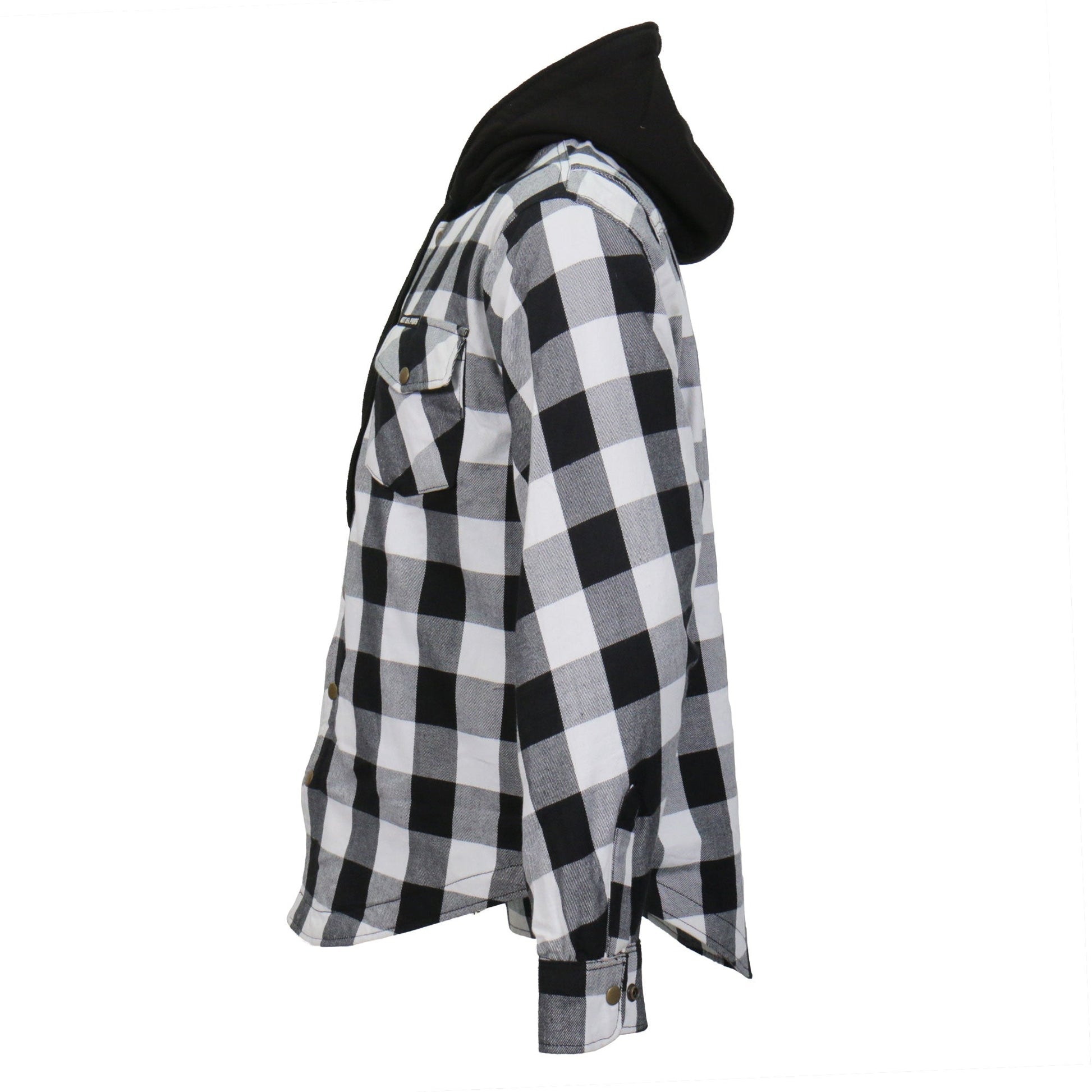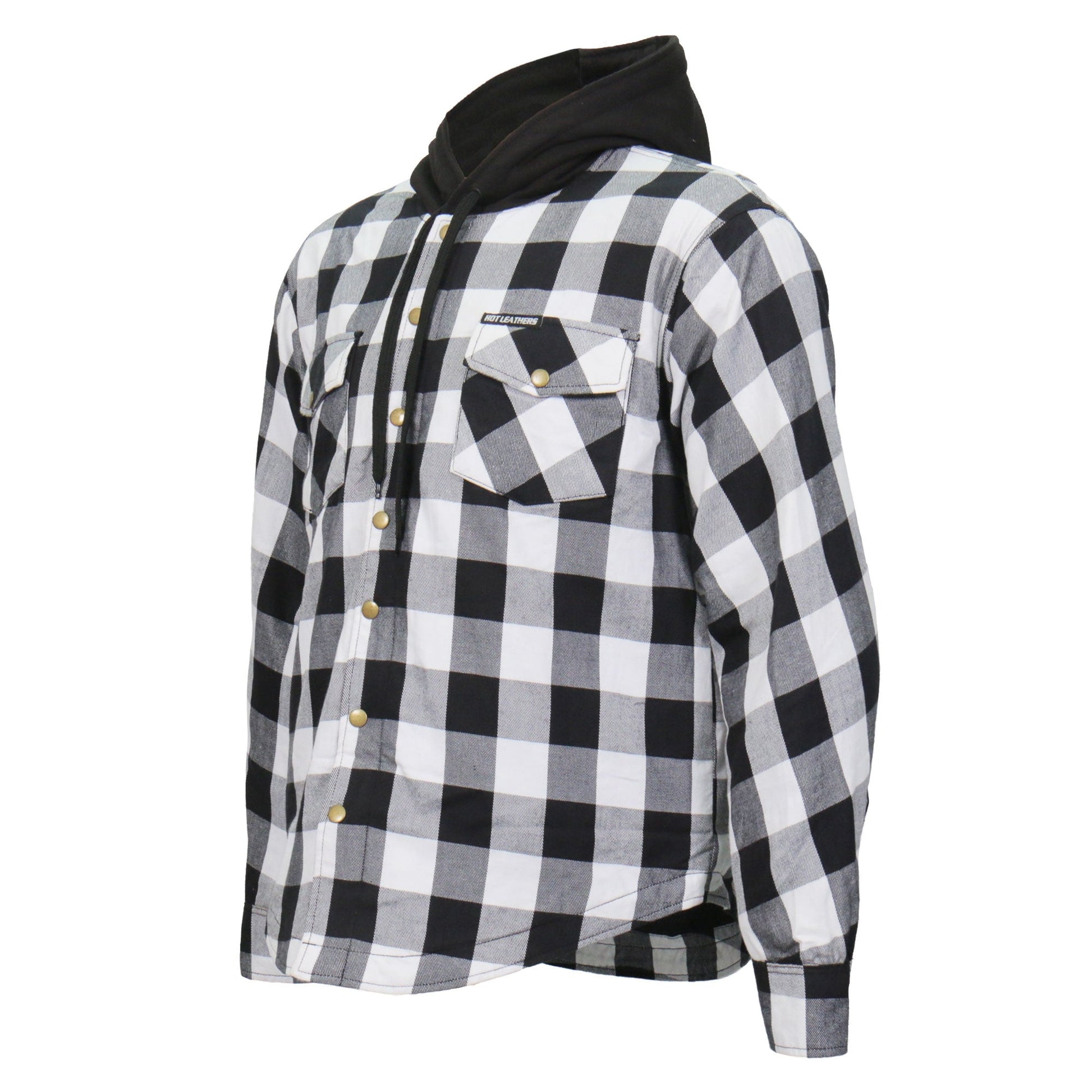 Hot Leathers JKM3006 Men’s Motorcycle Black and White Hooded Armored Flannel Biker Jacket