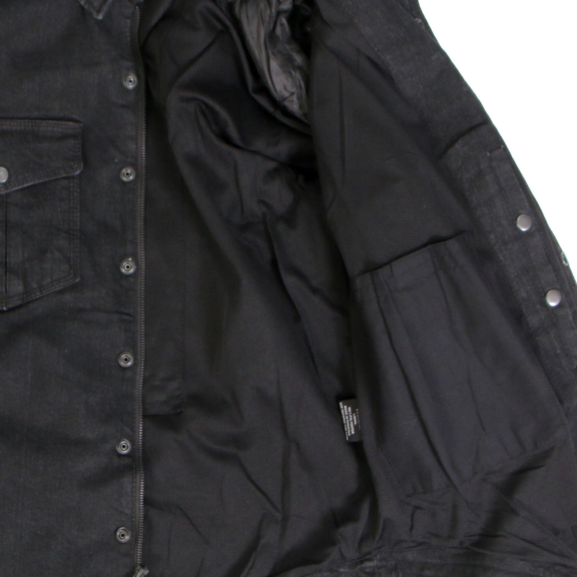 Hot Leathers JKM3009 Men's Classic Motorcycle Black Denim Long Sleeve Biker Shirt with Armor