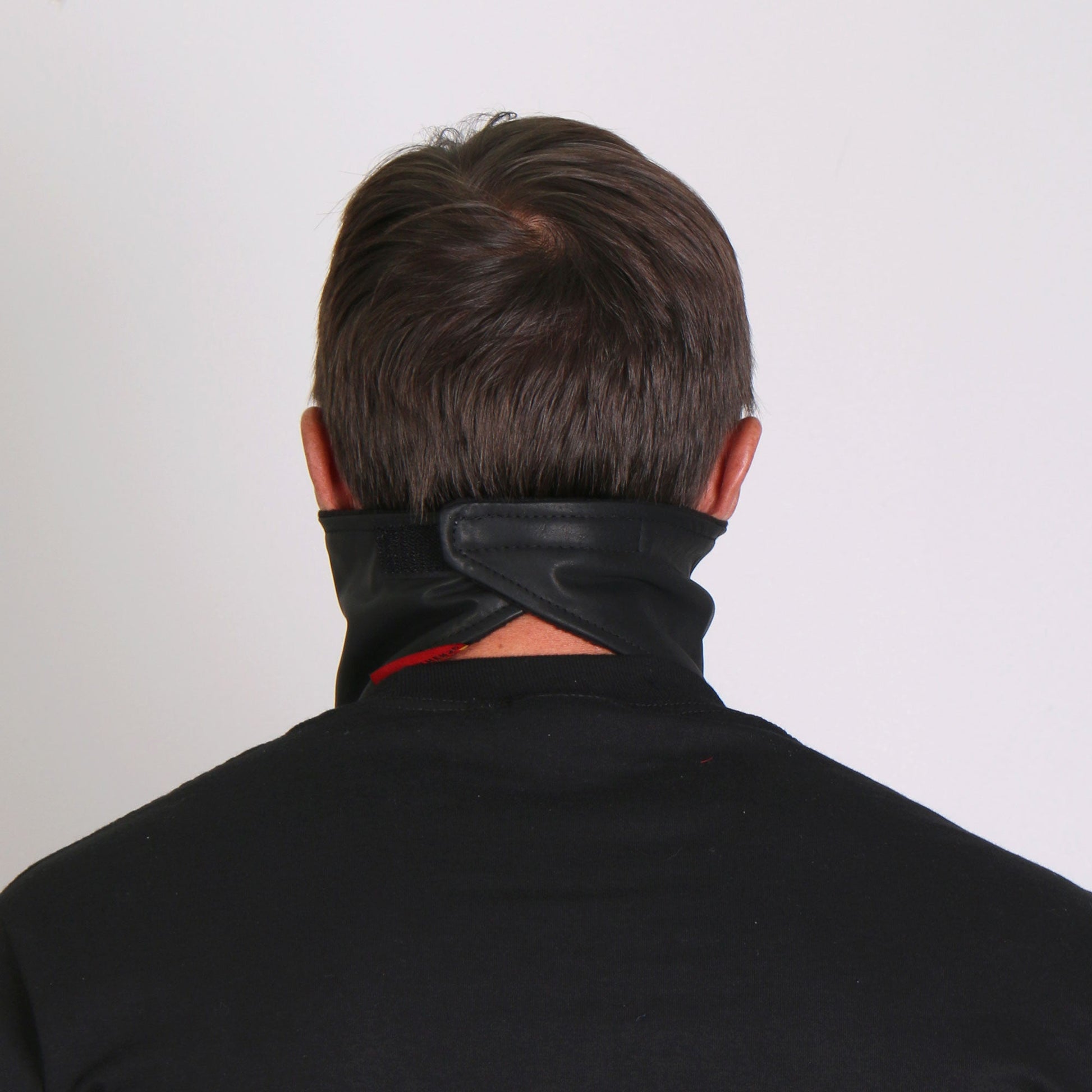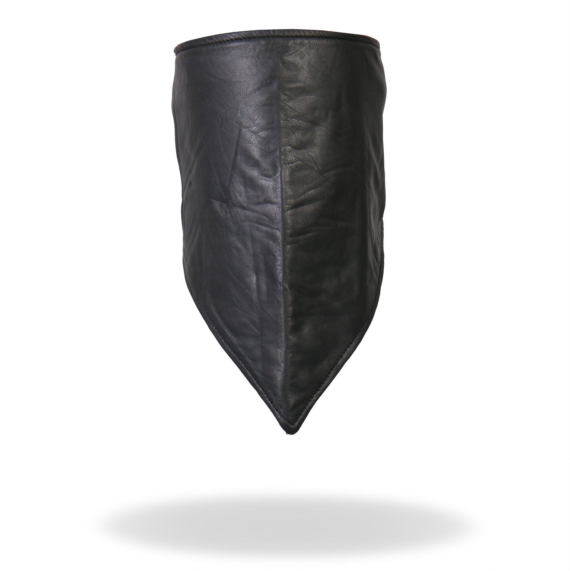 A bandana style, soft black cowhide leather neck warmer with an inner fleece lining, designed to keep you warm and protected during cold weather riding or winter games. Show off your biker style wearing this awesome