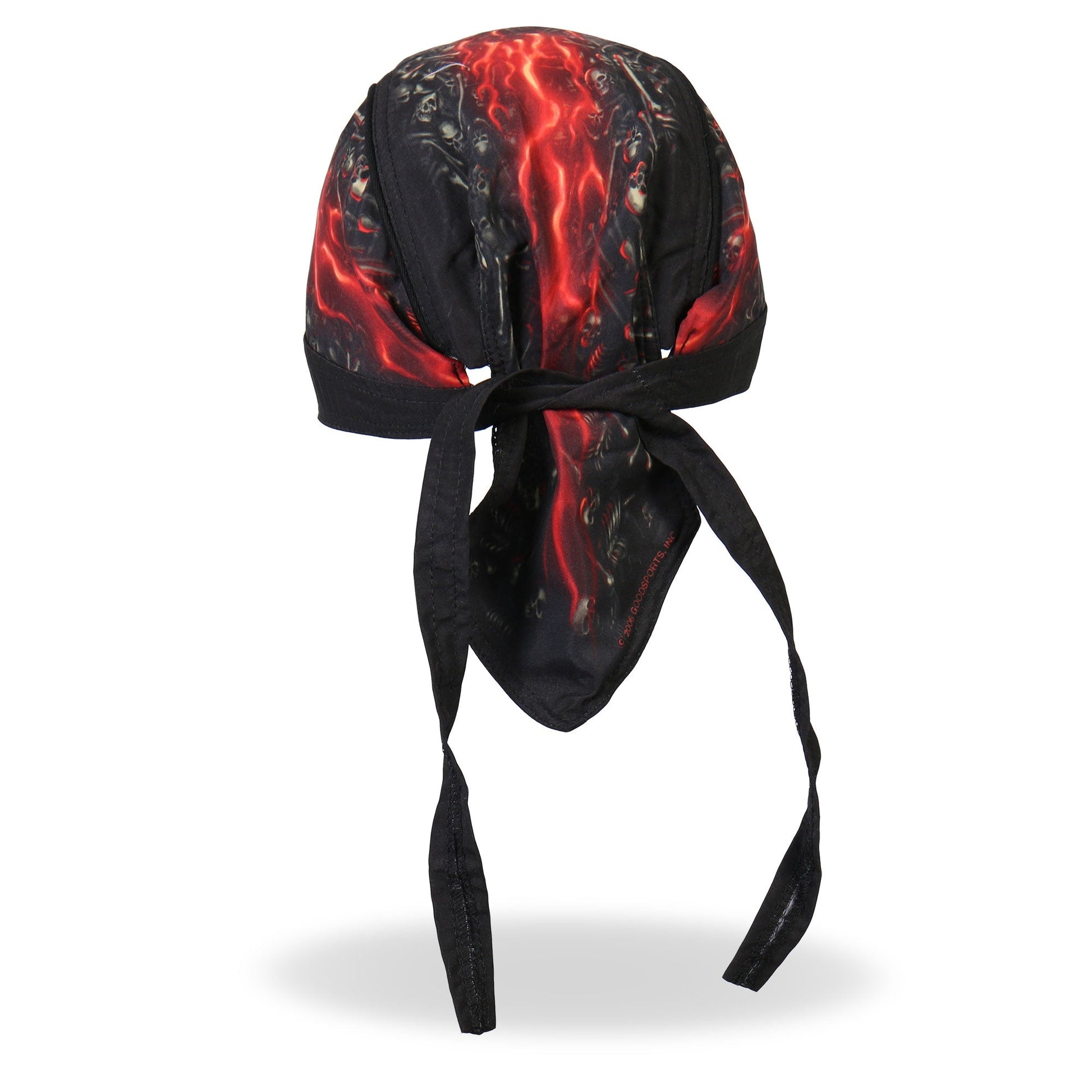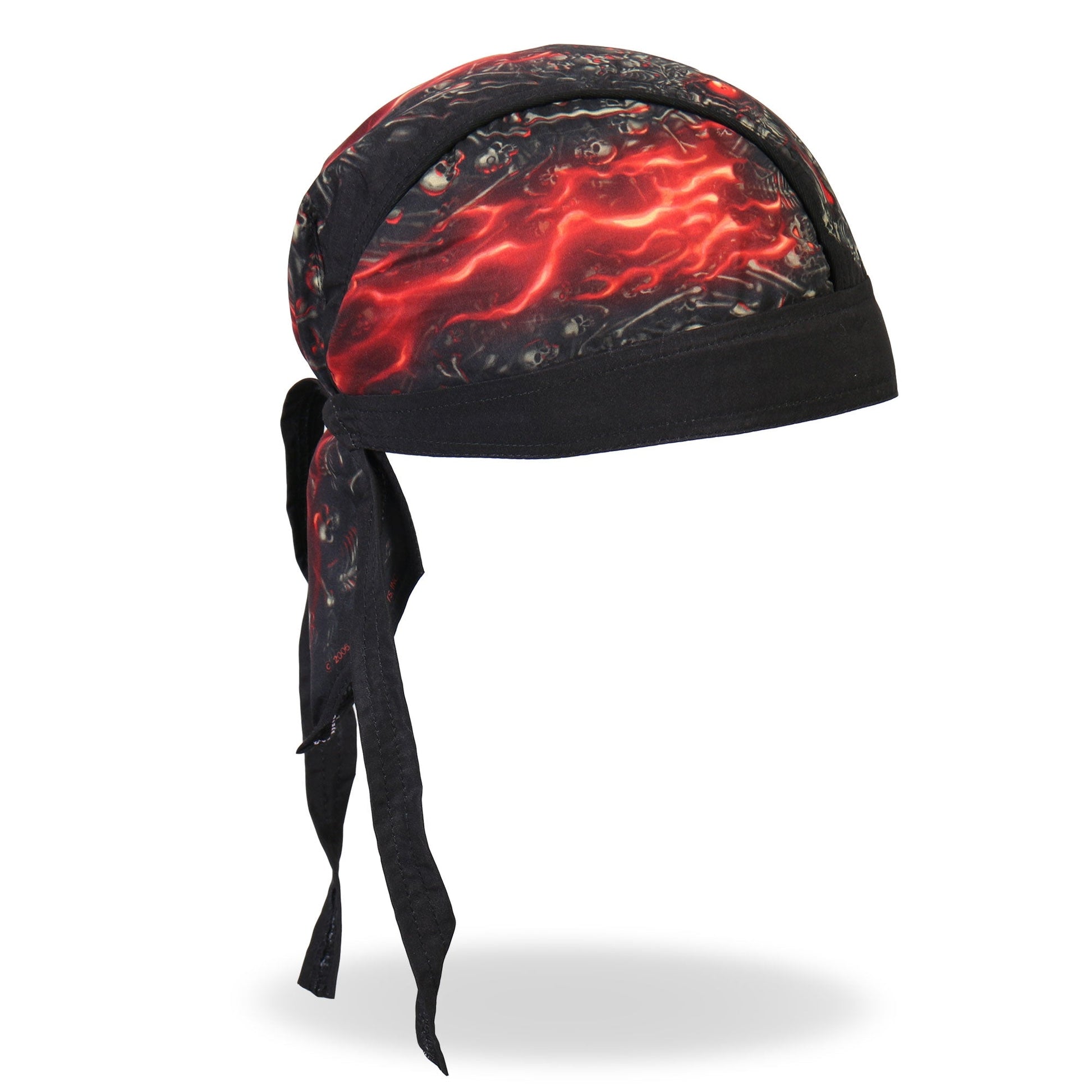 Whether you're hitting the road for a joyride on your motorcycle, getting together with your club, or just need some UV protection and sweat control, Hot Leathers premium doo rag head wraps are just what you need! Put on your new headwrap bandana while you run errands or handle some yard work. Represent your unique style with our moisture wicking, mesh lined head wraps, showcasing bright, long lasting designs sure to turn heads! This head wrap features our original skulls and flames design.