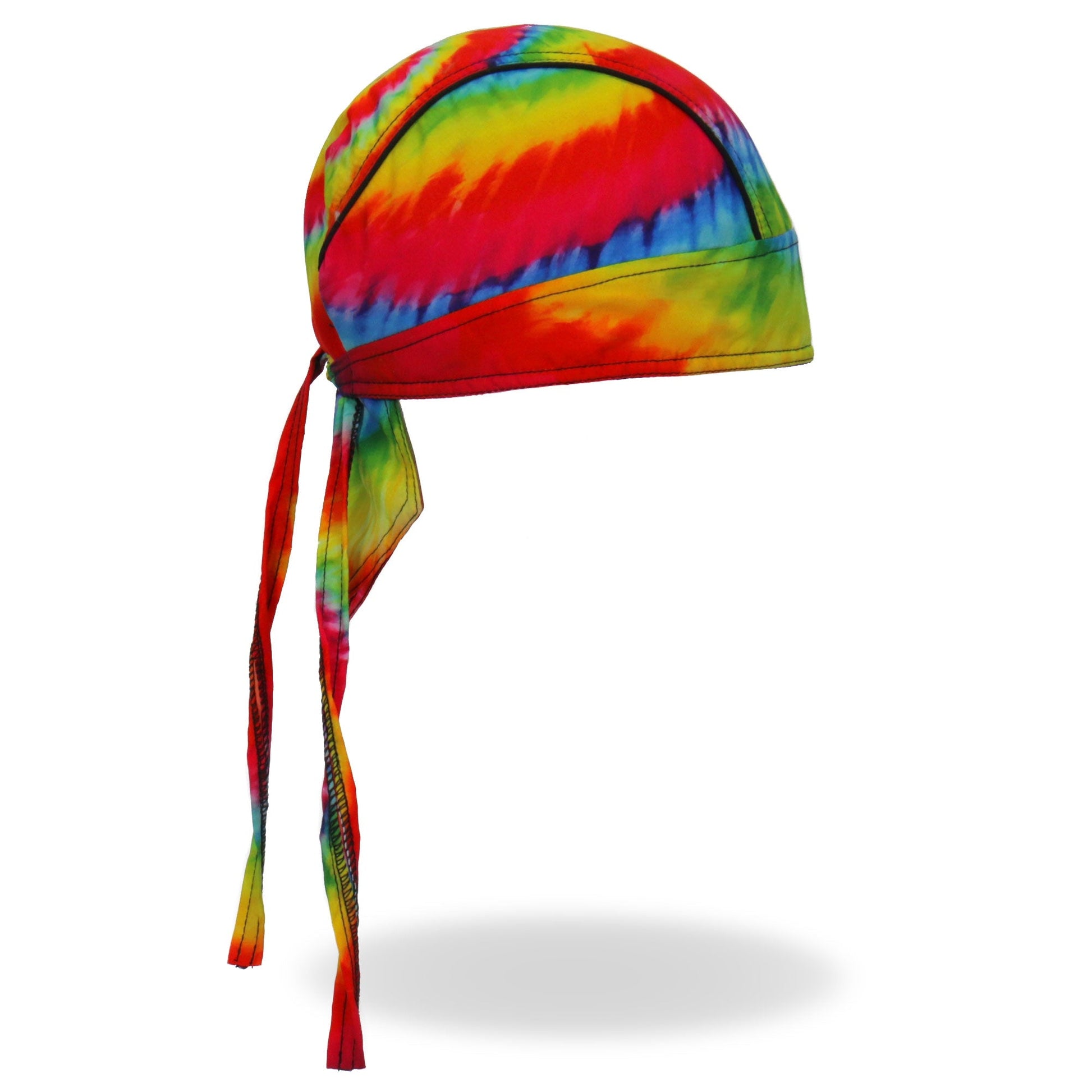 Whether you're hitting the road for a joyride on your motorcycle, getting together with your club, or just need some UV protection and sweat control, Hot Leathers premium doo rag head wraps are just what you need! Put on your new headwrap bandana while you run errands or handle some yard work. Represent your unique style with our moisture wicking, mesh lined head wraps, showcasing bright, long lasting designs sure to turn heads! This head wrap features our original tie-dye design.