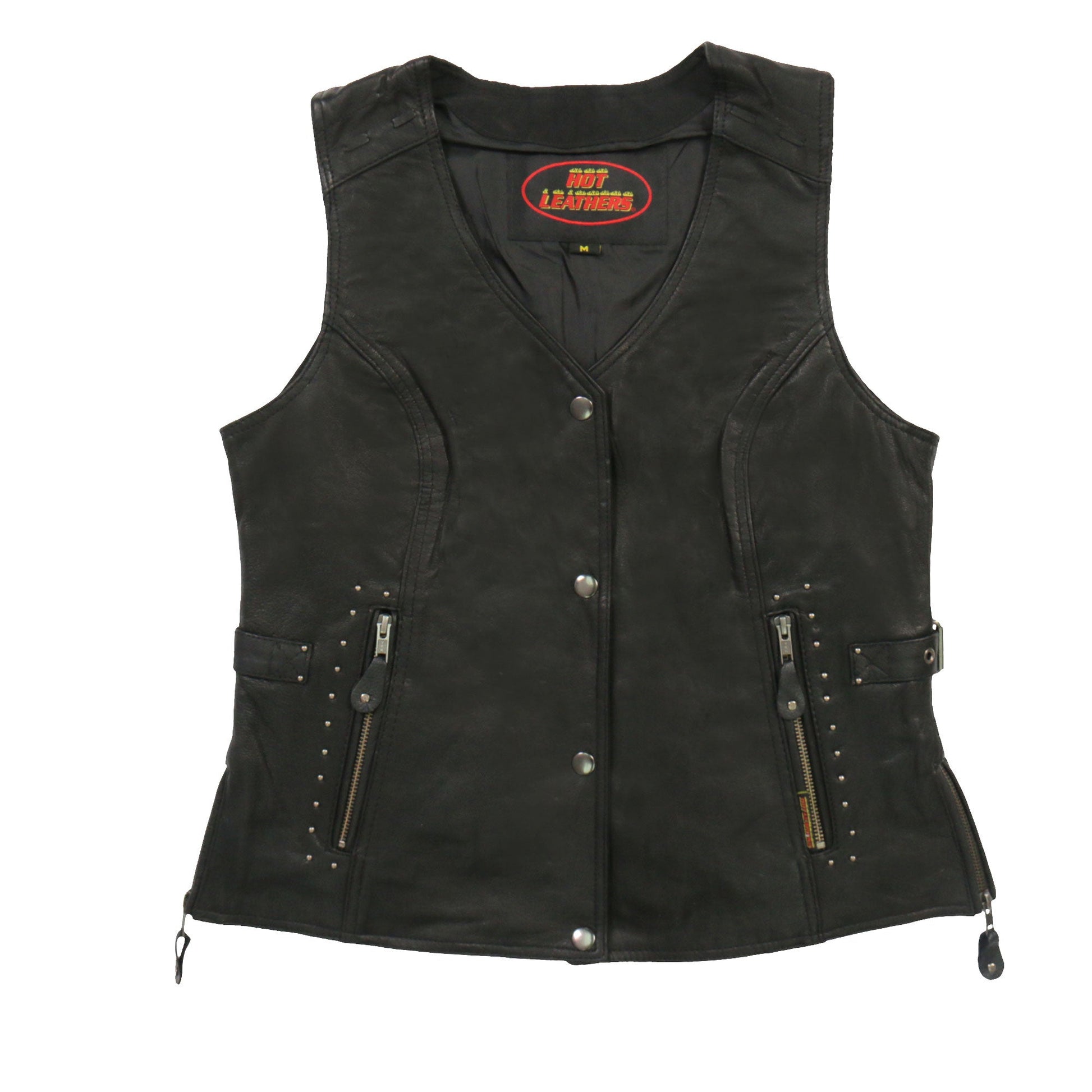 Hot Leathers VSL1014 Ladies Motorcycle style Black Leather Biker Vest with Fringe