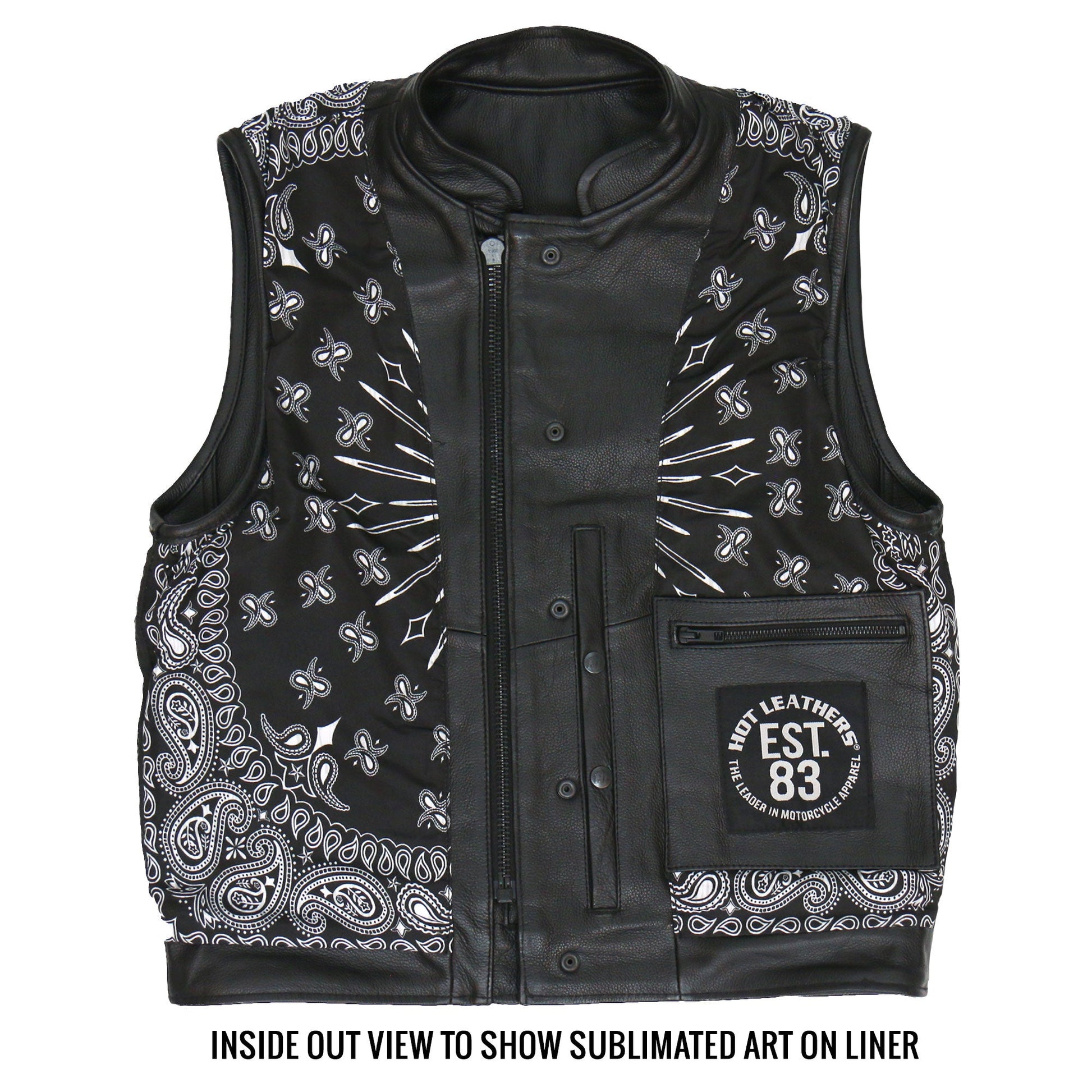 Hot Leathers VSM1049 Men's Black 'Paisley' Motorcycle Club style Conceal and Carry Leather Biker Vest