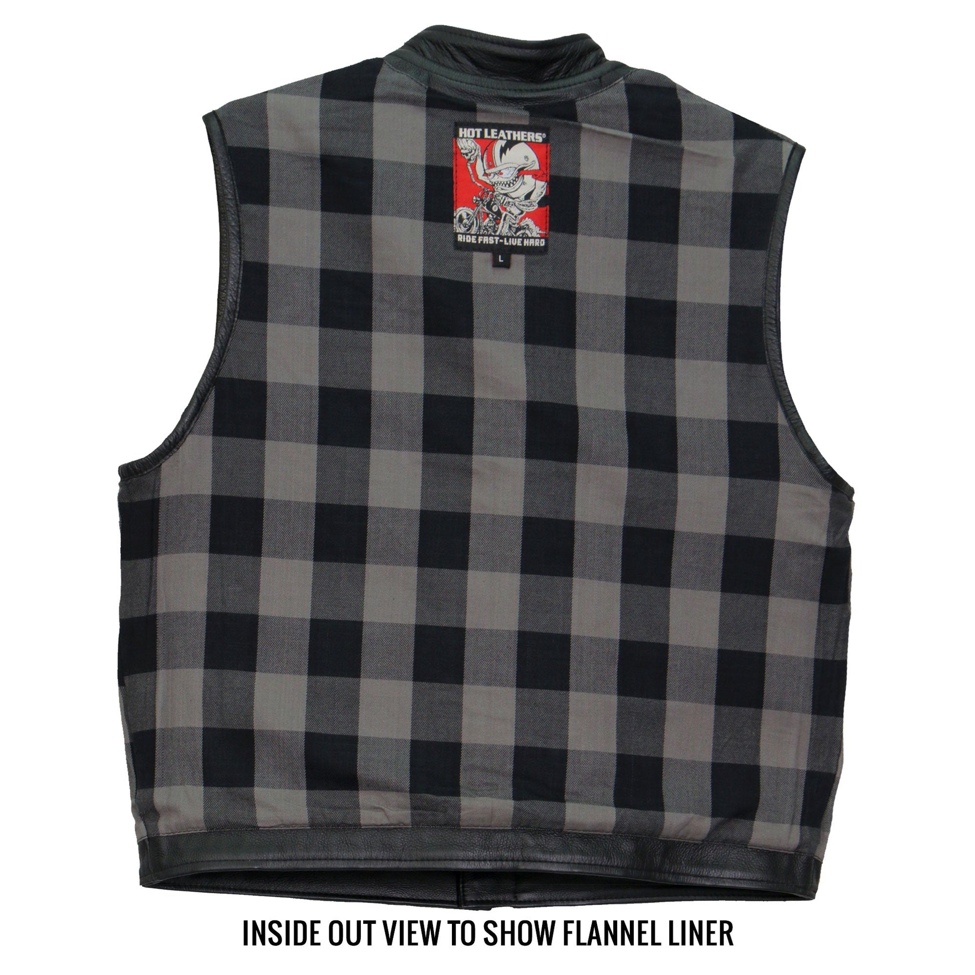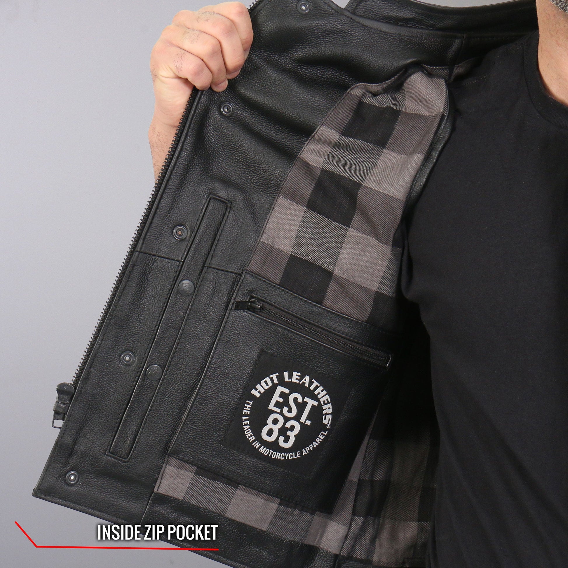 Hot Leathers VSM1059 Men's Black 'Flannel Grey' Motorcycle Club style Conceal and Carry Leather Biker Vest