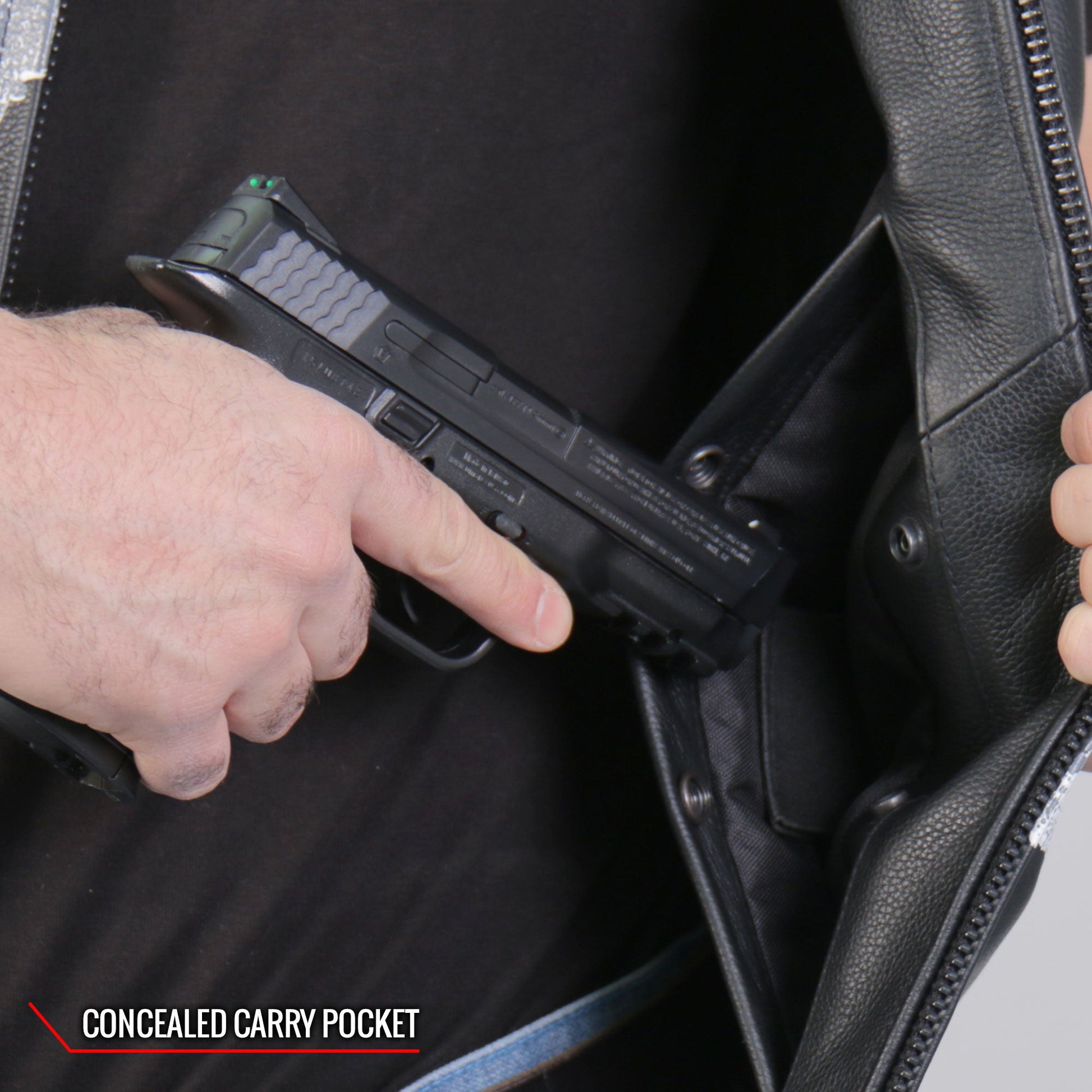 Hot Leathers VSM2001 Men's Black Motorcycle Club style ‘Jumbo Skull’ Conceal and Carry Leather Biker Vest
