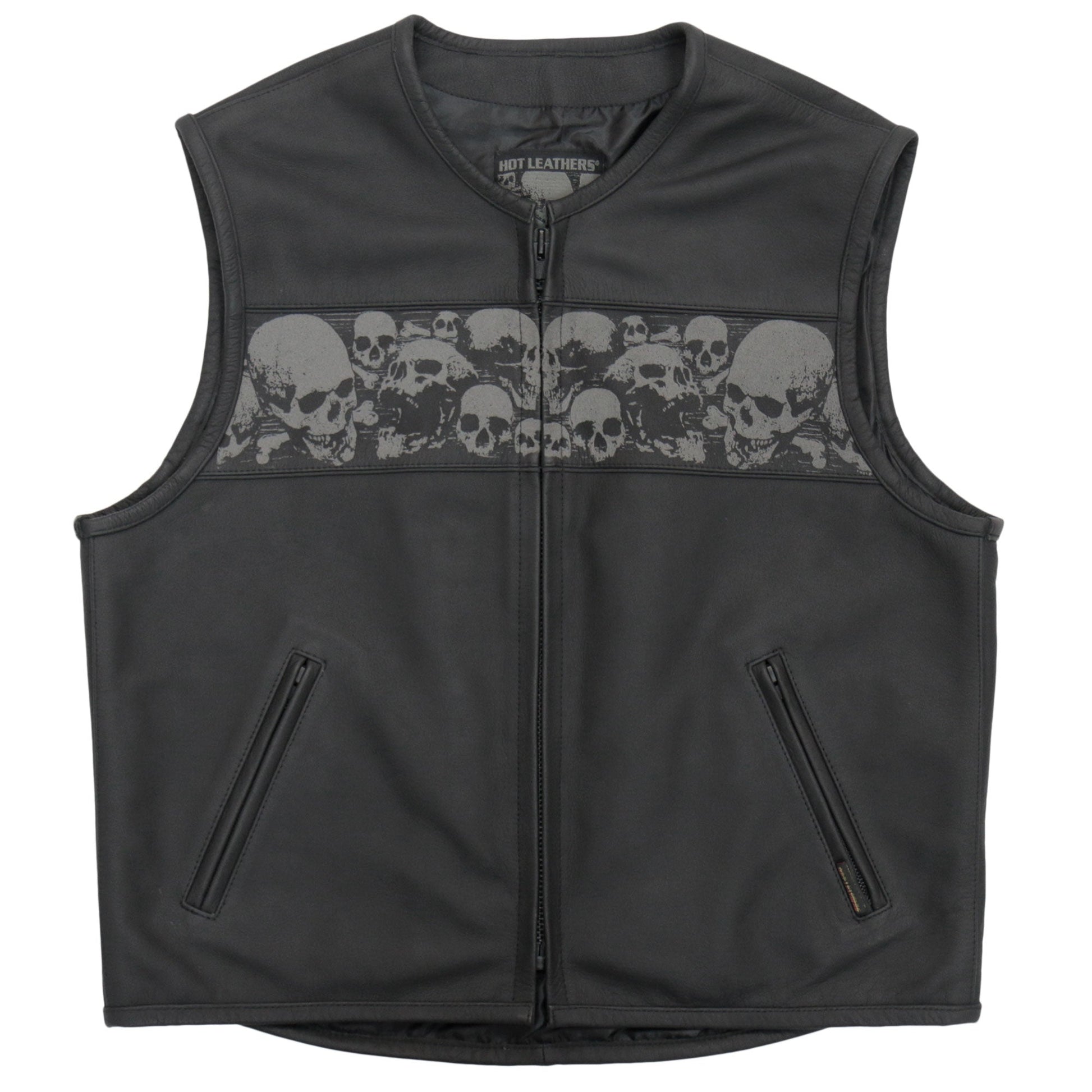 Hot Leathers VSM2003 Men's Black 'Ancient Skulls' Motorcycle Club style Conceal and Carry Leather Biker Vest