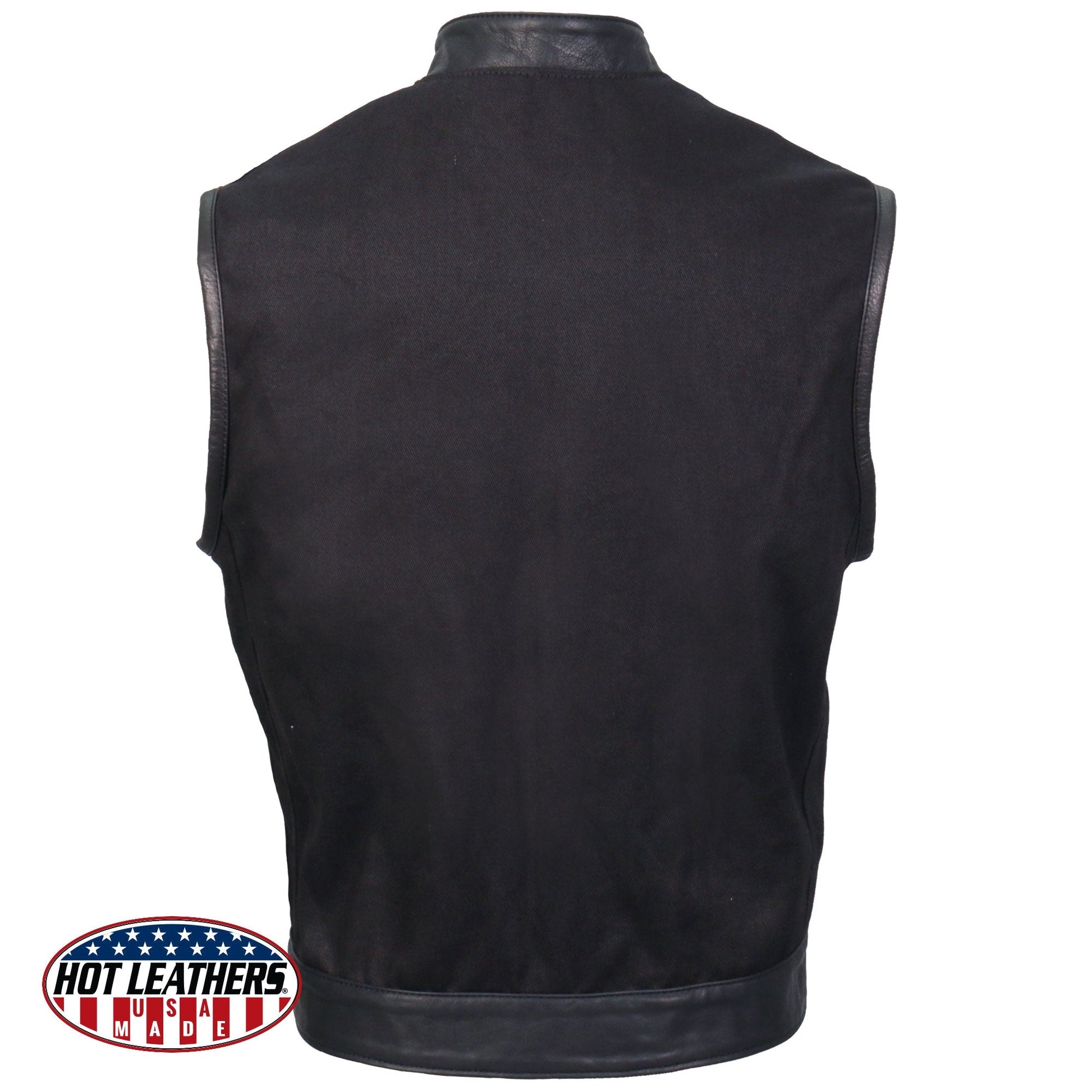Hot Leathers VSM5101 Men's USA Made Denim and Leather Vest with Red Lining