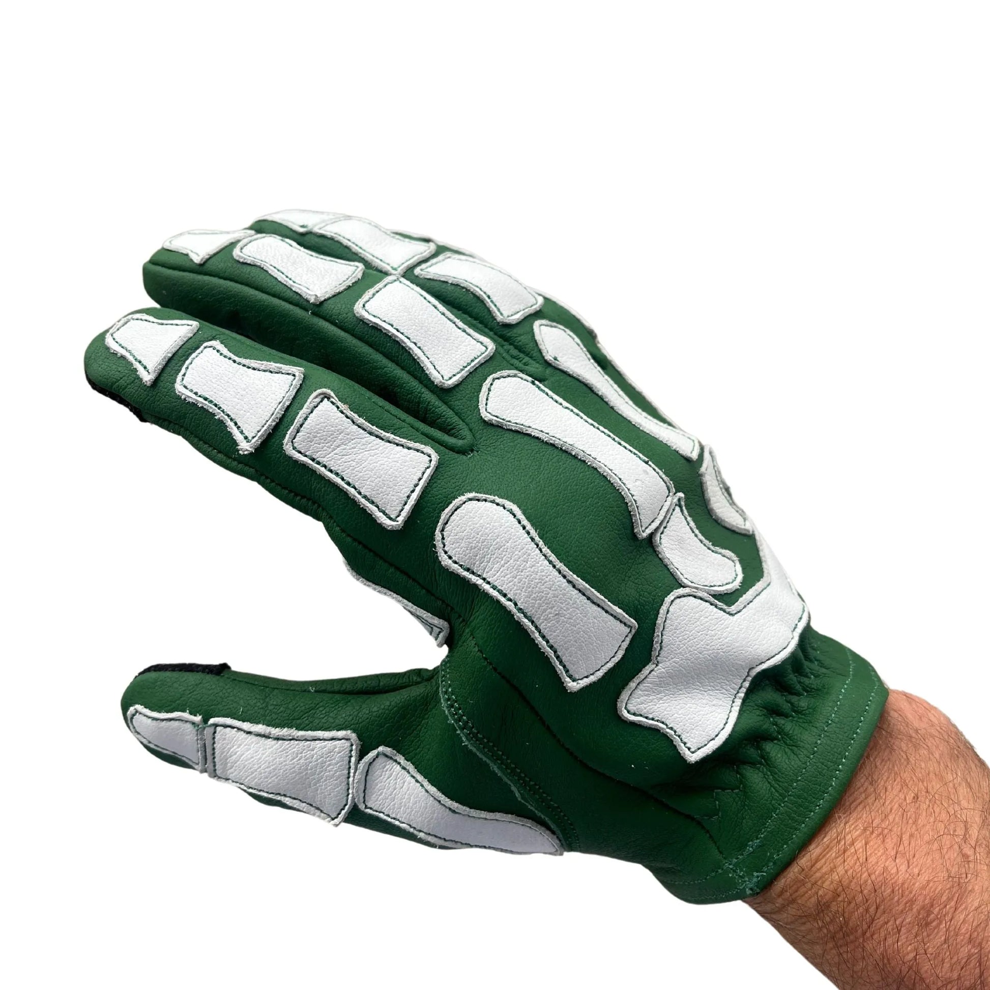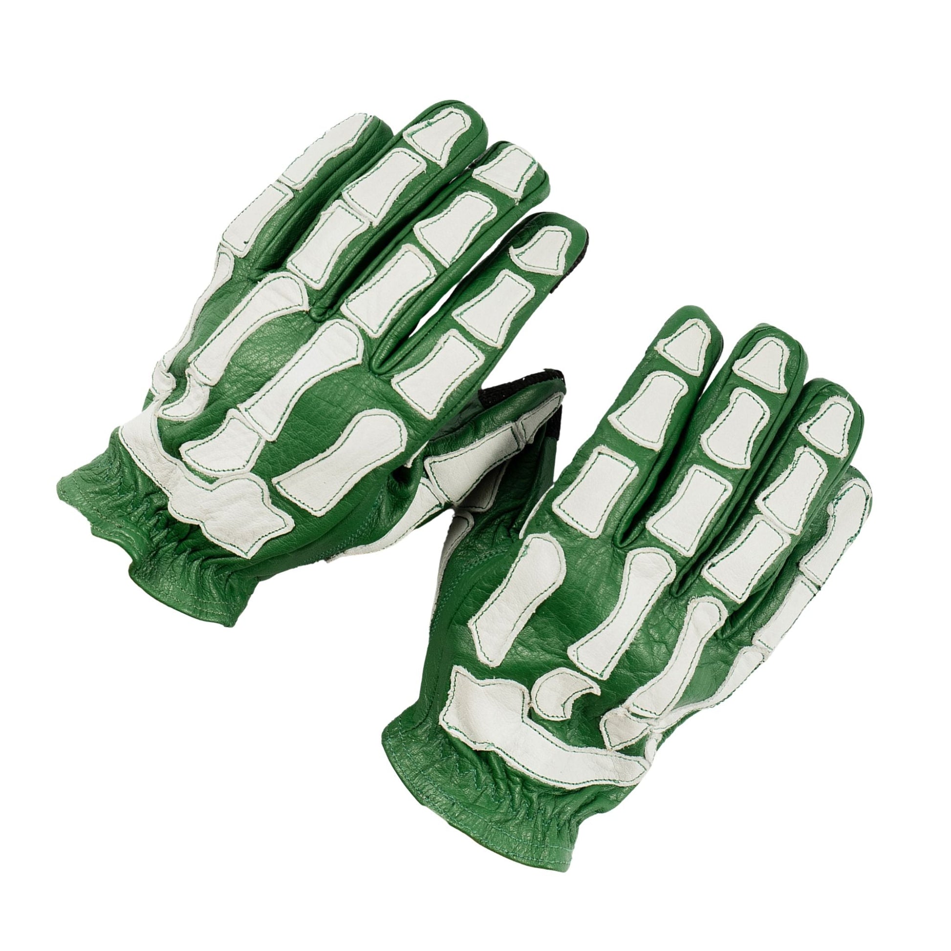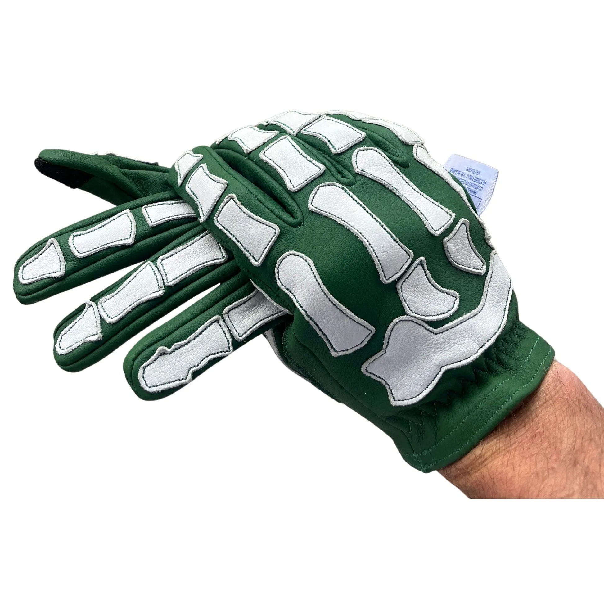 Leather Motorcycle Glove - Buffalo Hide - Skeleton Design - Green & White