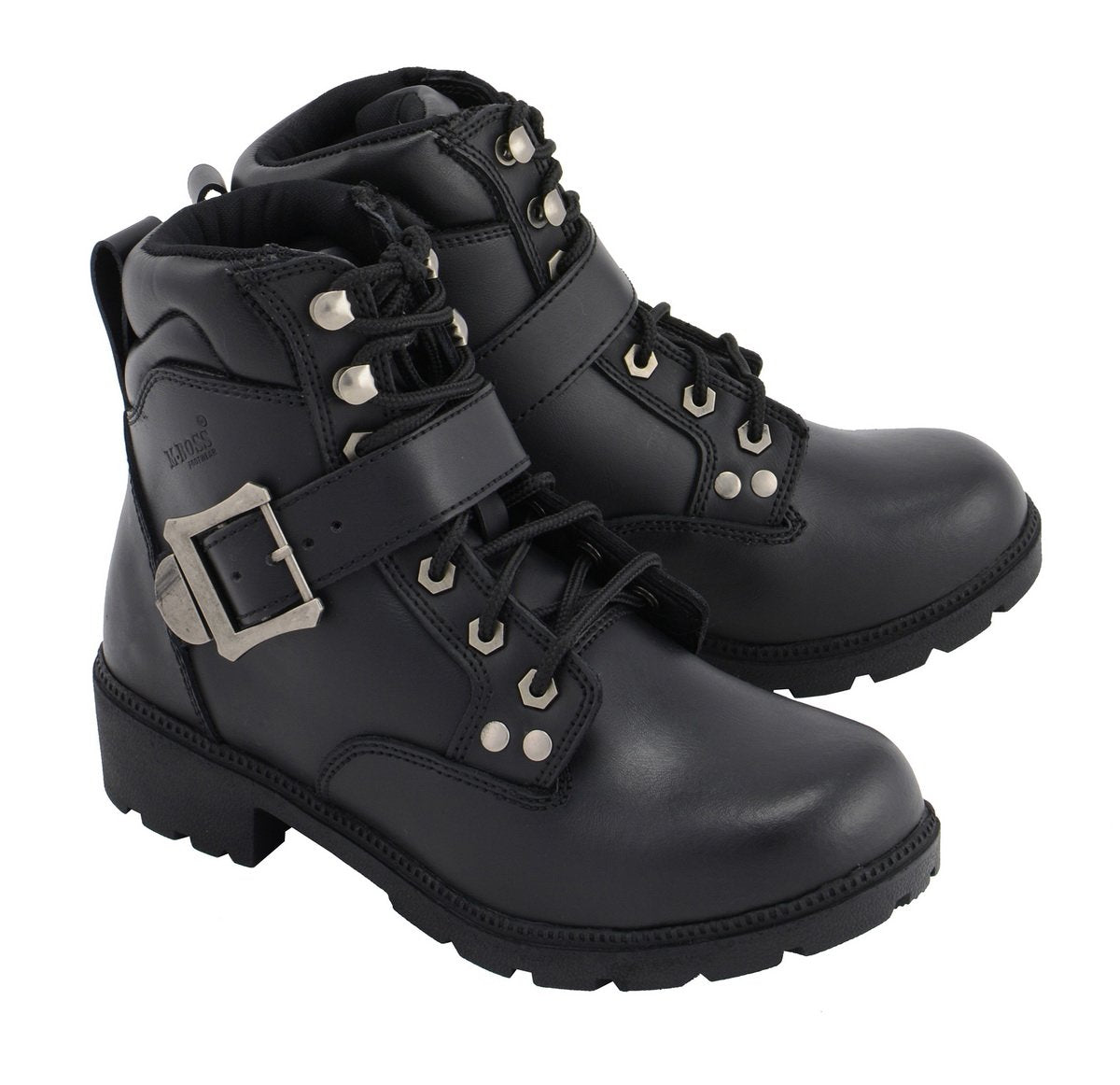 M Boss Apparel BOS49301 Ladies 7 Inch Black Road Captain Leather Motorcycle Boots