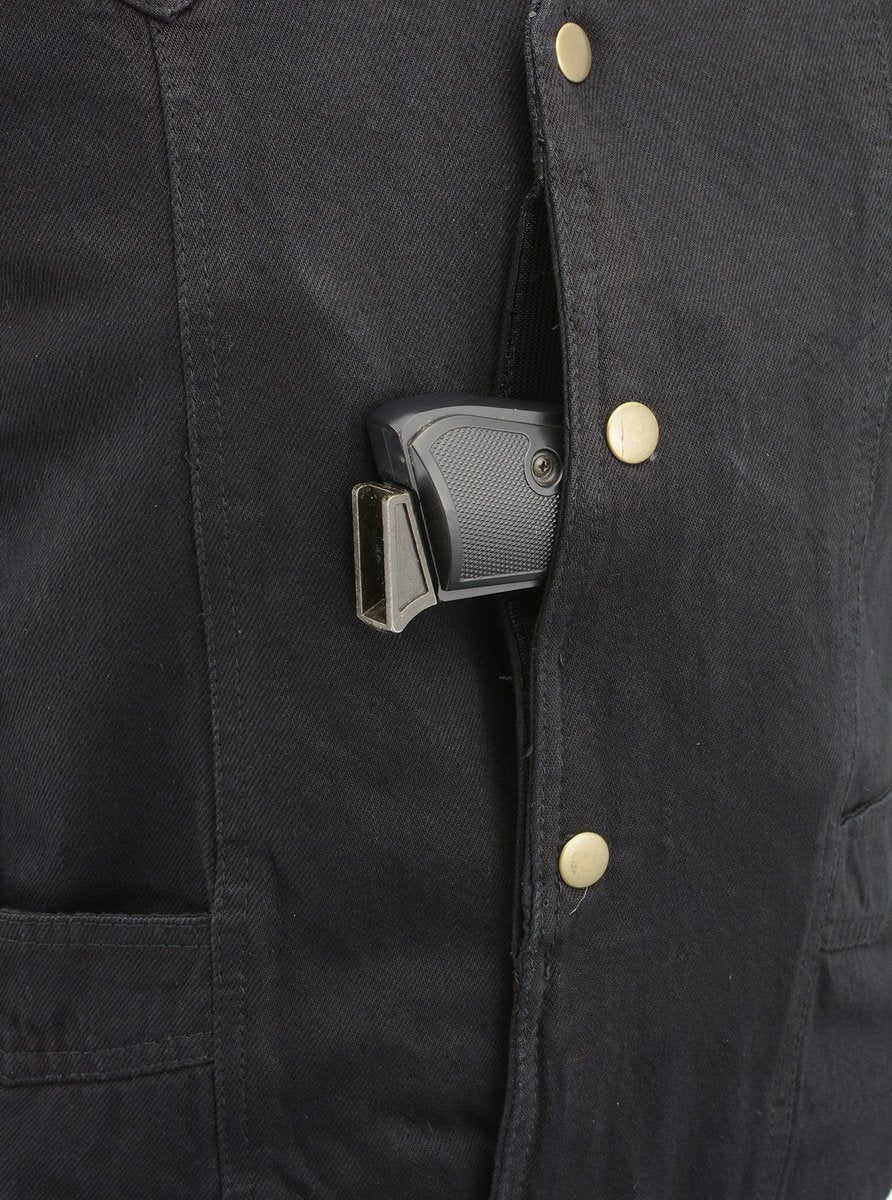 M Boss Motorcycle Apparel BOS13003 Men's Blue Denim Motorcycle Side Lace Vest with Quick Draw Pocket