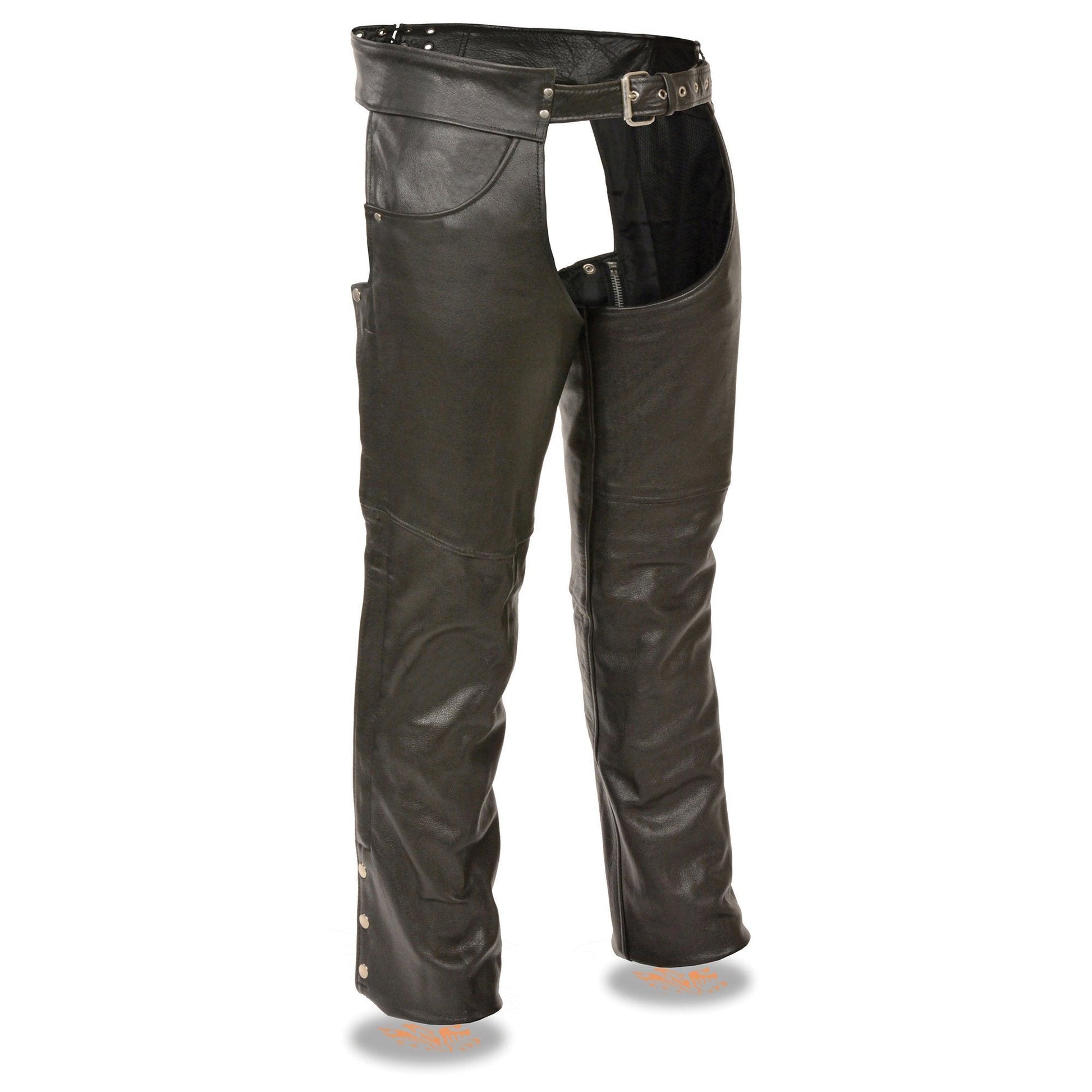 Milwaukee Leather SH1101TALL Men's Classic Black Motorcycle Riding Leather Chaps with Jean Pockets in Tall Sizes