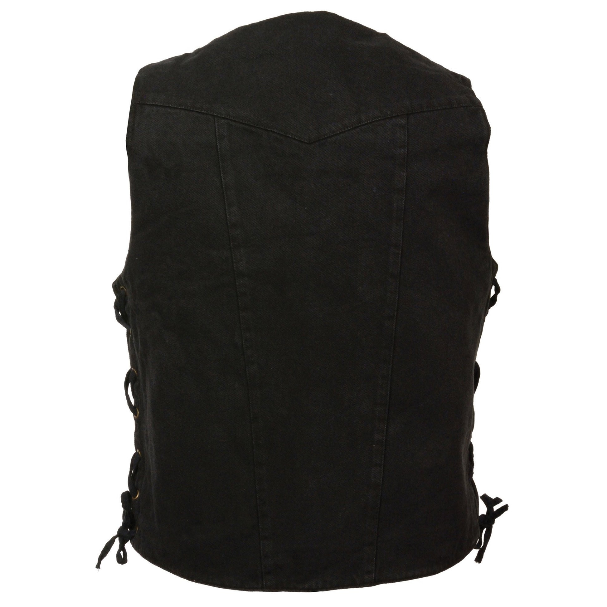 Milwaukee Leather DM1990 Men's Black 10 Pocket Side Lace Denim Vest
