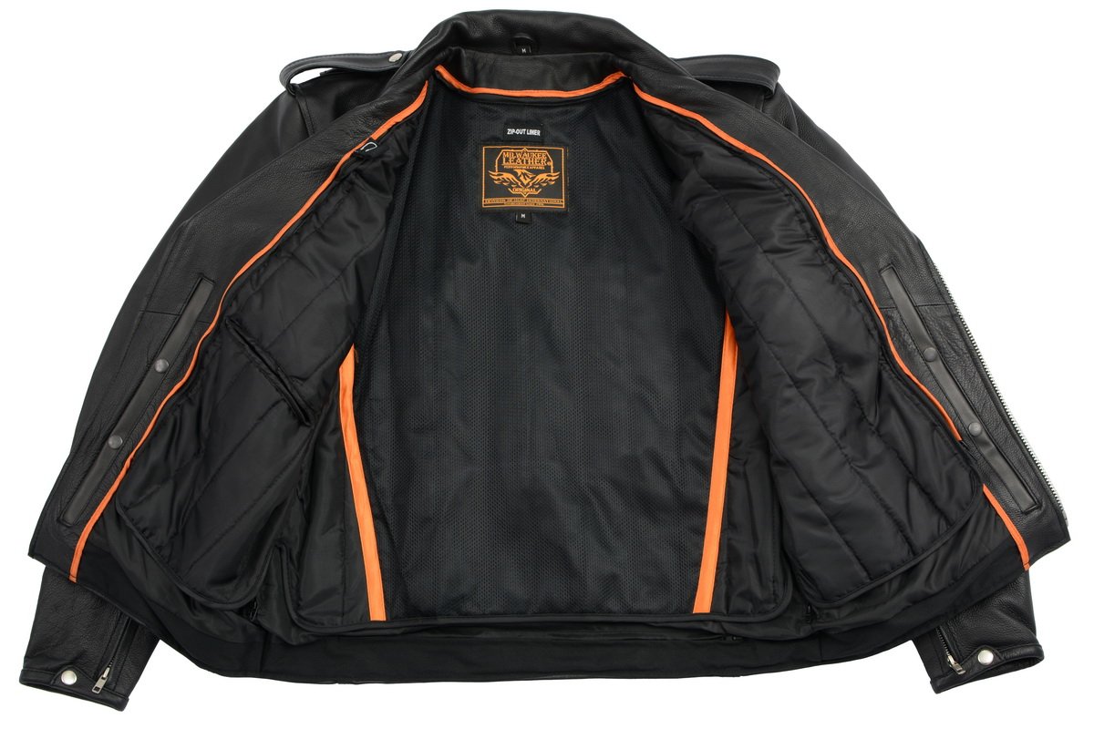 Milwaukee Leather LKM1711 Black Leather Motorcycle Jacket for Men, Thick Police Style Biker Jacket w/ Side Lace