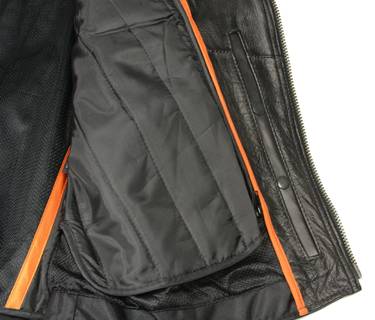 - Ventilation System: 2 Upper Chest Vents, 2 Arm Vents and 1 Large Back Vent with Zipper Closure for Maximum Air Flow