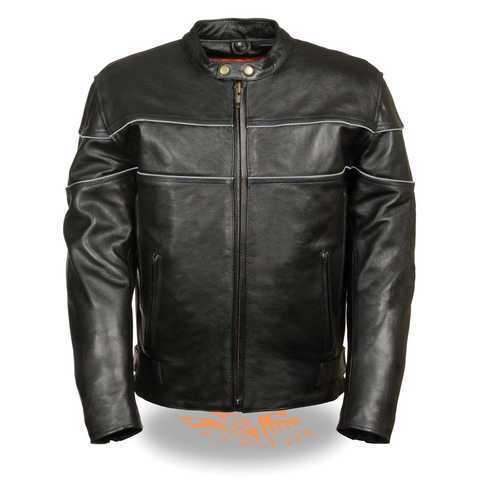 Milwaukee Leather LKM1785 Men’s Black Leather Racer Style Motorcycle Jacket w/ Side Stretch and Reflective Piping