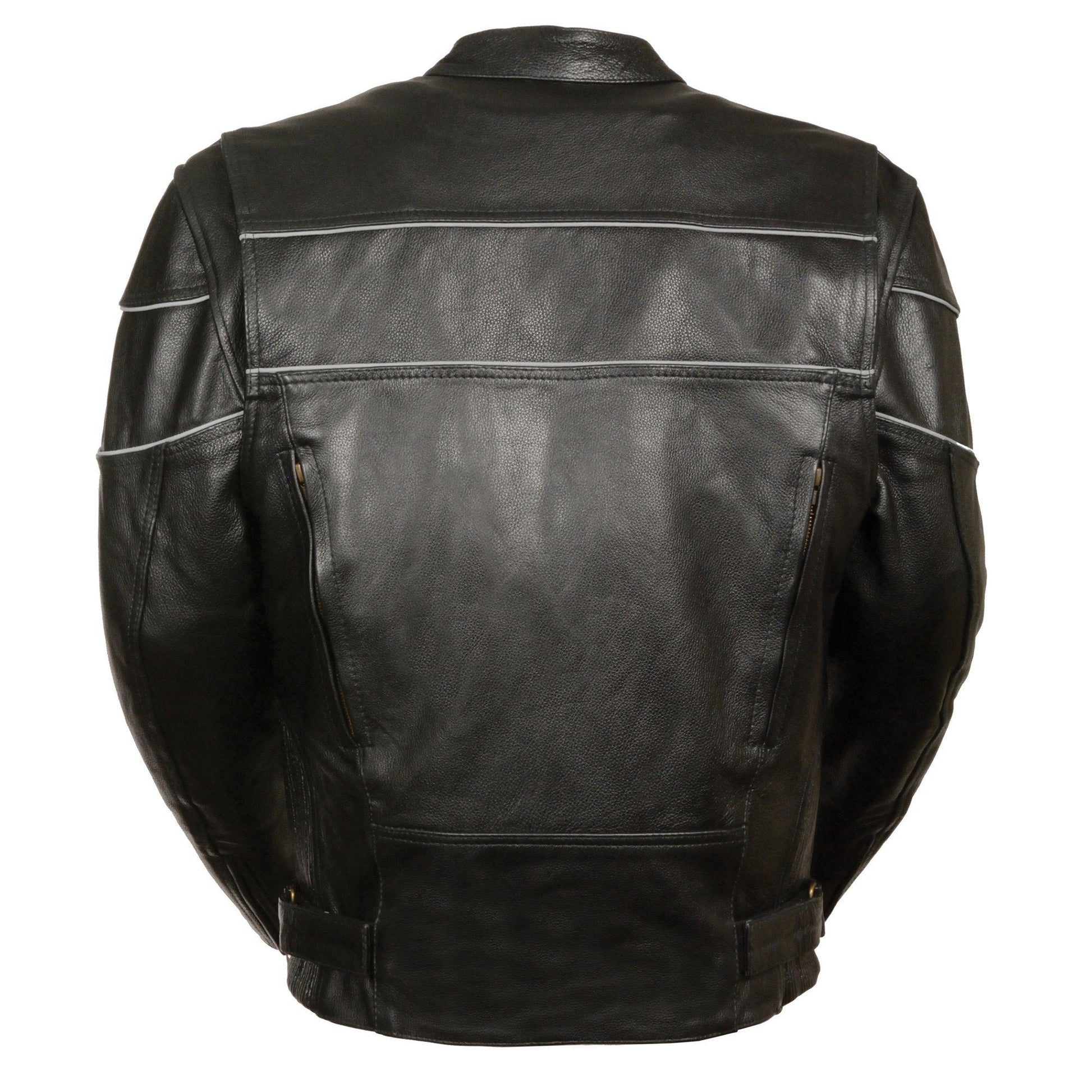 Milwaukee Leather LKM1785 Mens Black Leather Racer Style Motorcycle Jacket w/ Side Stretch and Reflective Piping