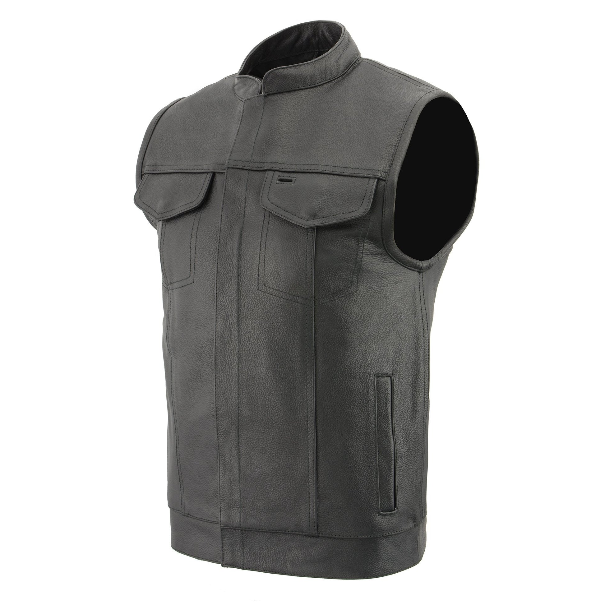 Milwaukee Leather LKM3713 Men's Black Leather Club Style Motorcycle Rider Vest W/ Dual Closure Zipper and Snaps