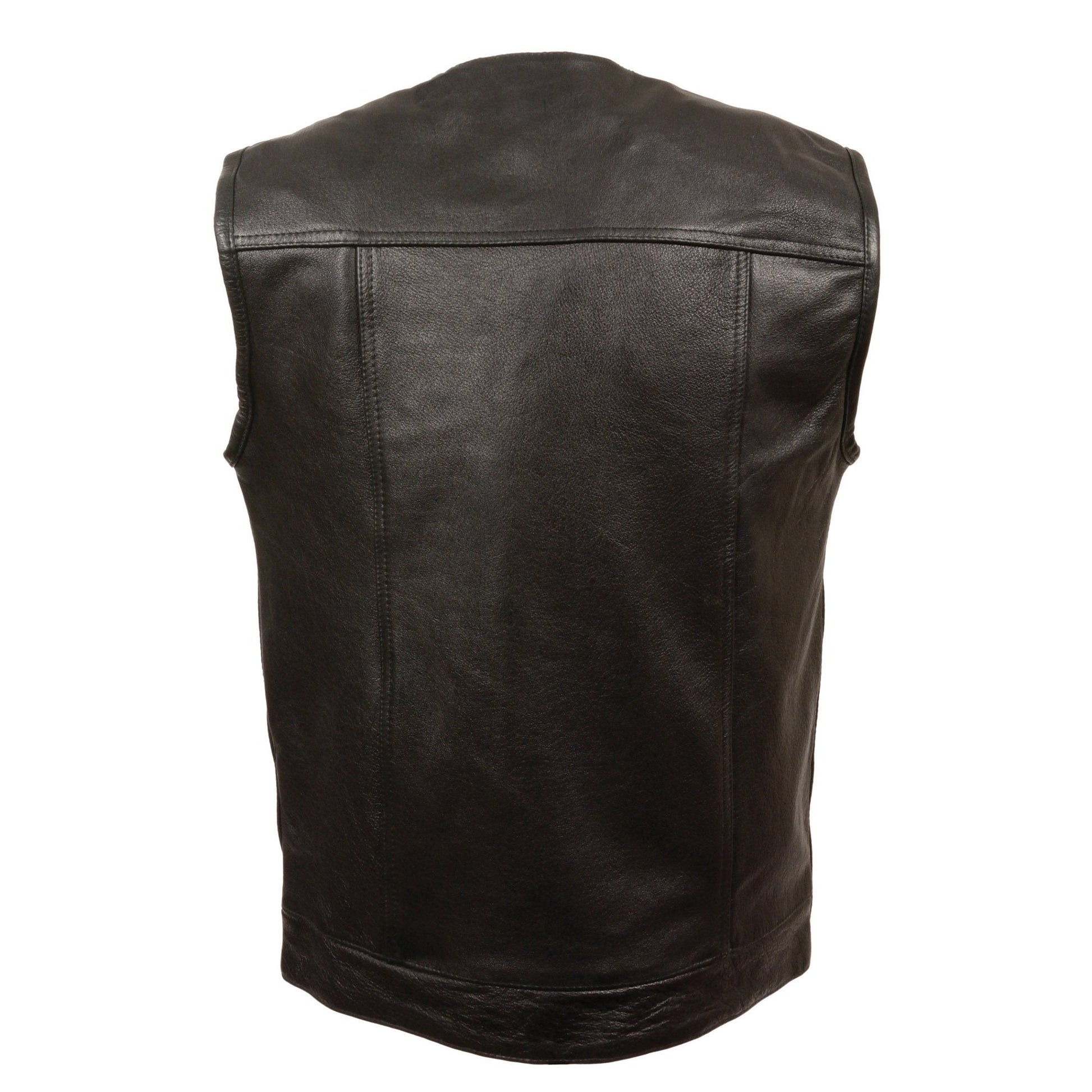 Milwaukee Leather LKM3721 Men's Black Leather Collarless Club Style Motorcycle Rider Vest w/Concealed Snap Closure