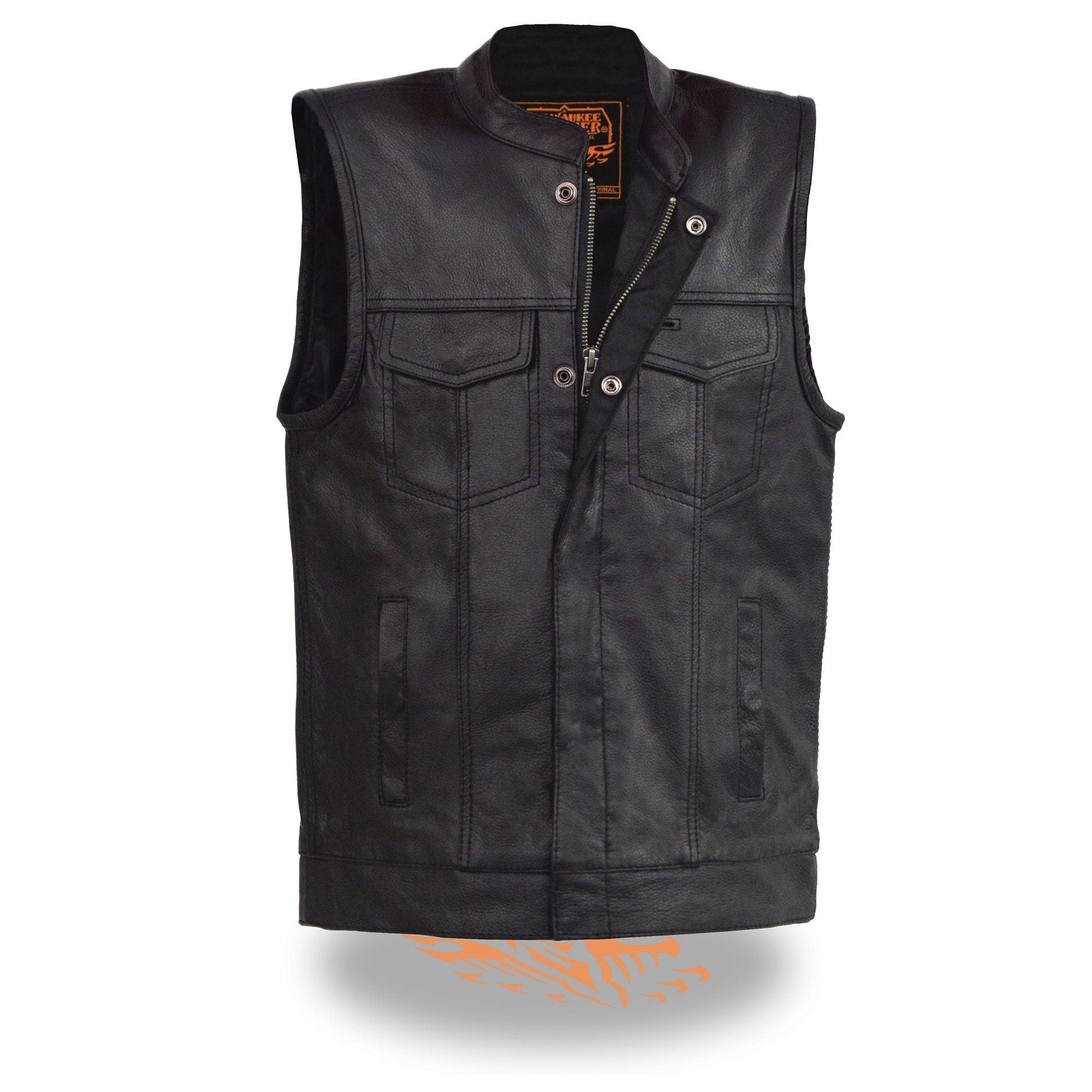 Milwaukee Leather LKY3850 Youth Size Black Leather Open Neck Club Style Motorcycle Riders Vest