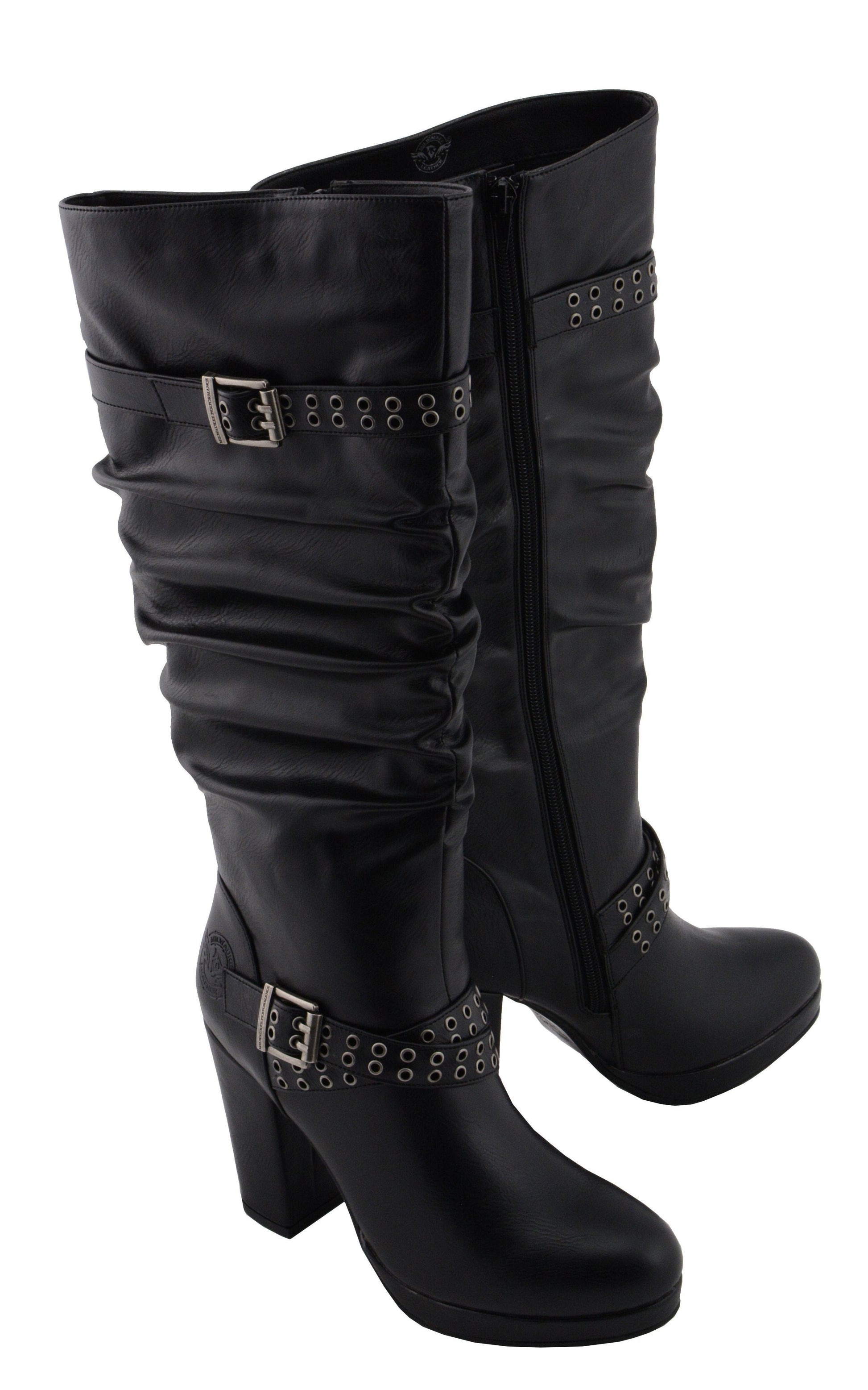Milwaukee Leather MBL9419 Women's Tall Premium Black Platform Fashion Casual Boots with Slouch Shaft