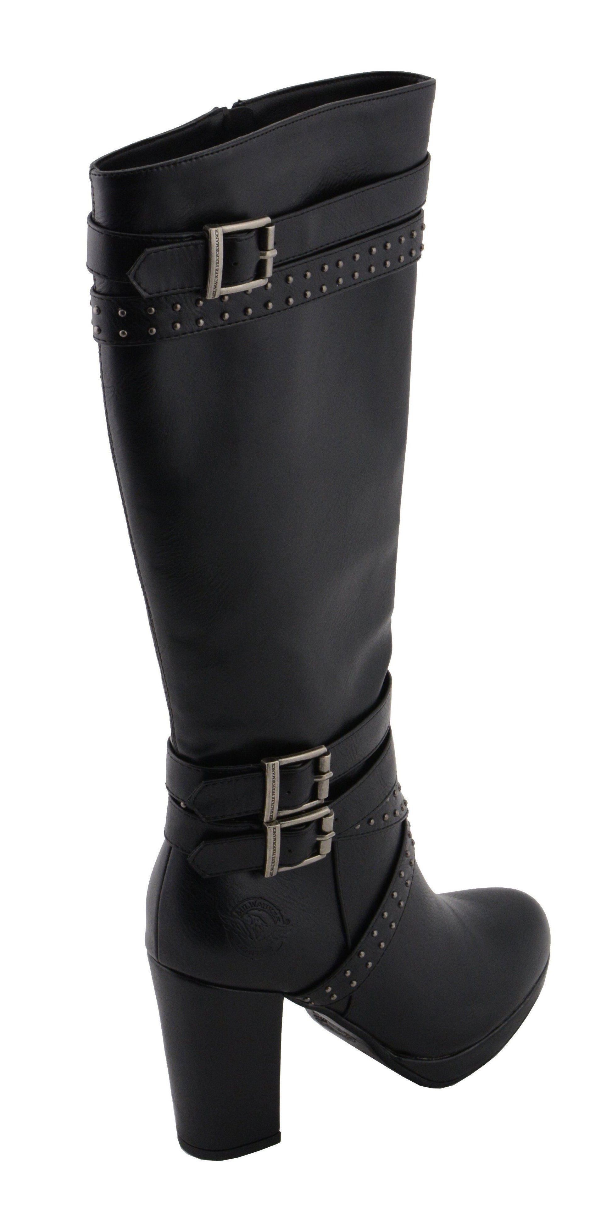 Milwaukee Leather MBL9422 Women’s Tall Black Studded Strap Boots with Platform Heel