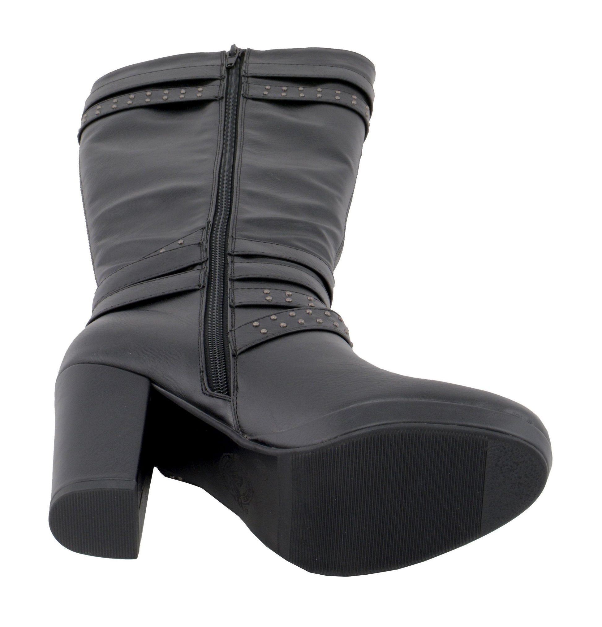 Milwaukee Leather MBL9422 Women's Tall Black Studded Strap Fashion Casual Boots with Platform Heel