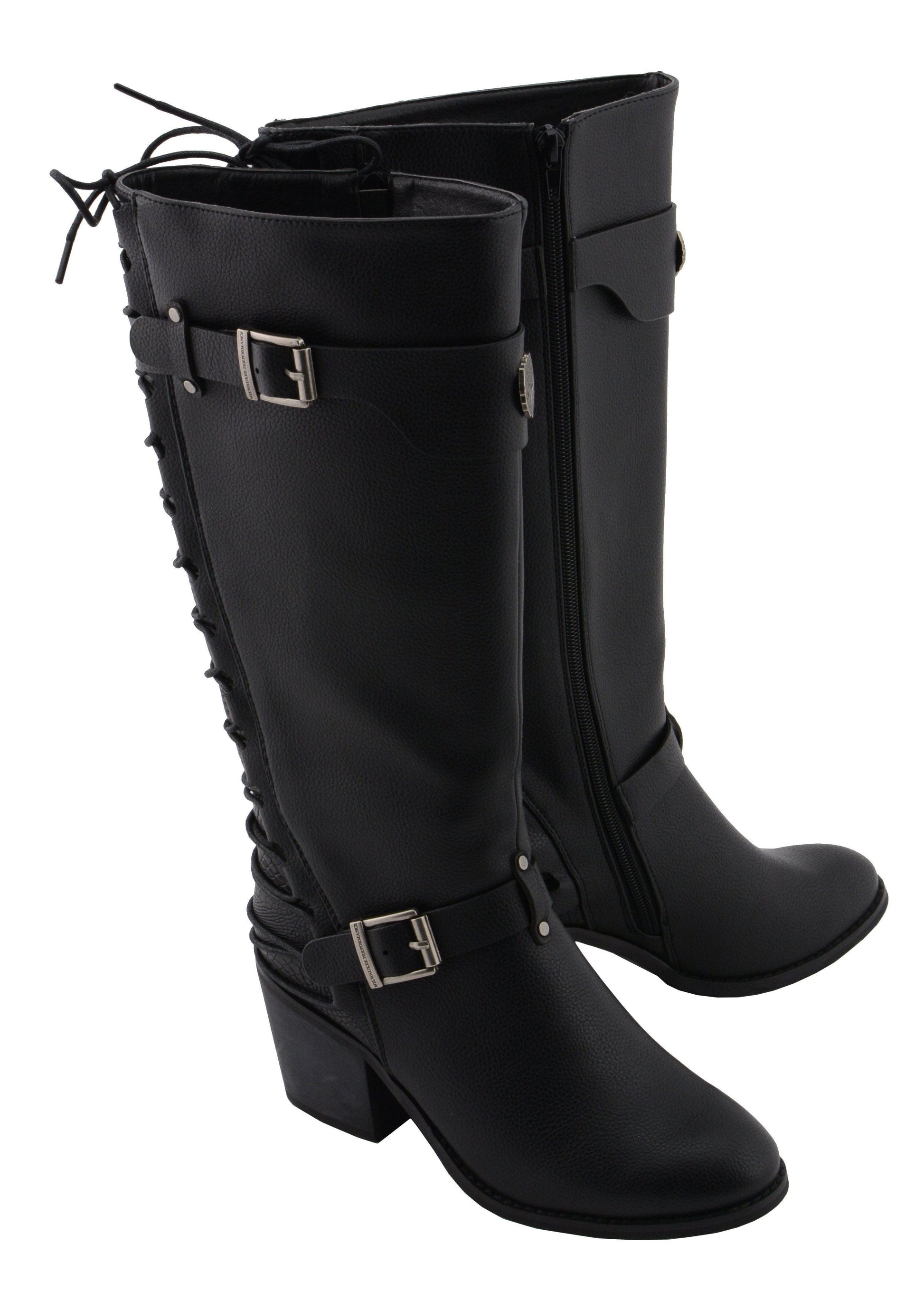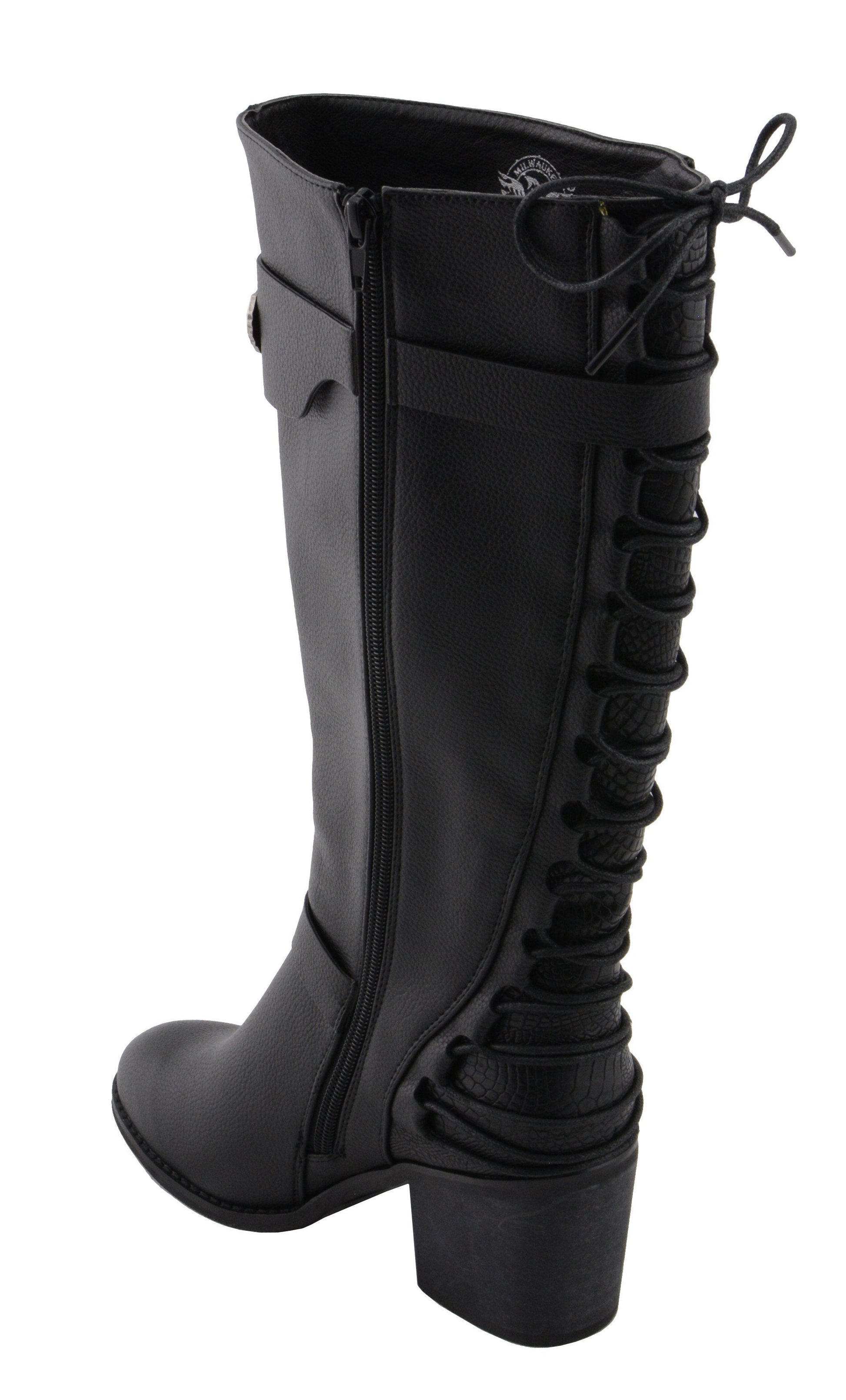 Milwaukee Leather MBL9427 Women's Black Tall Fashion Casual Boots with Back End Lacing