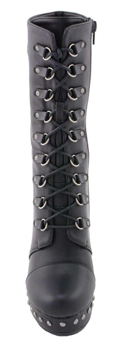 Milwaukee Leather MBL9438 Women’s Black Lace-Up Boot with Platform Wedge