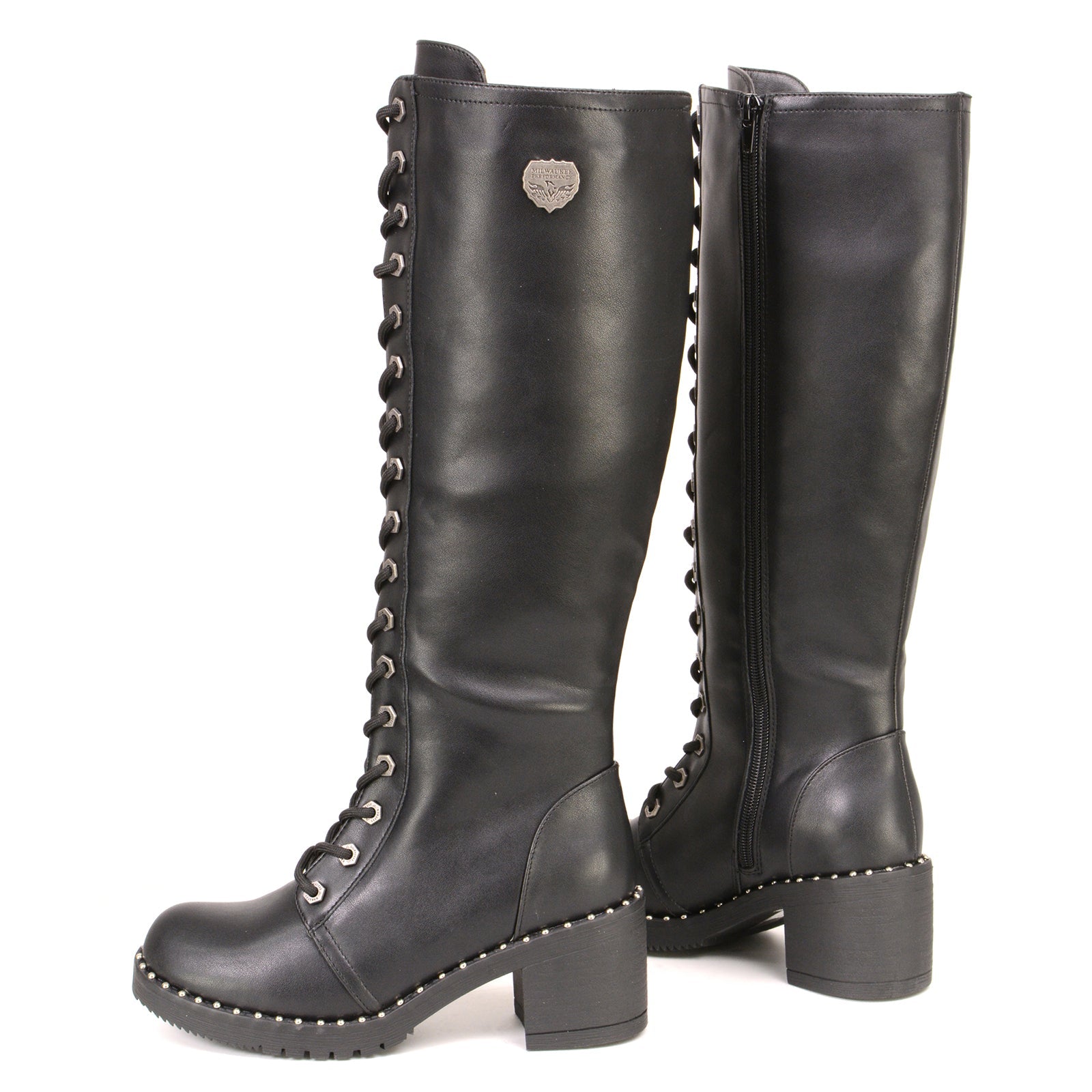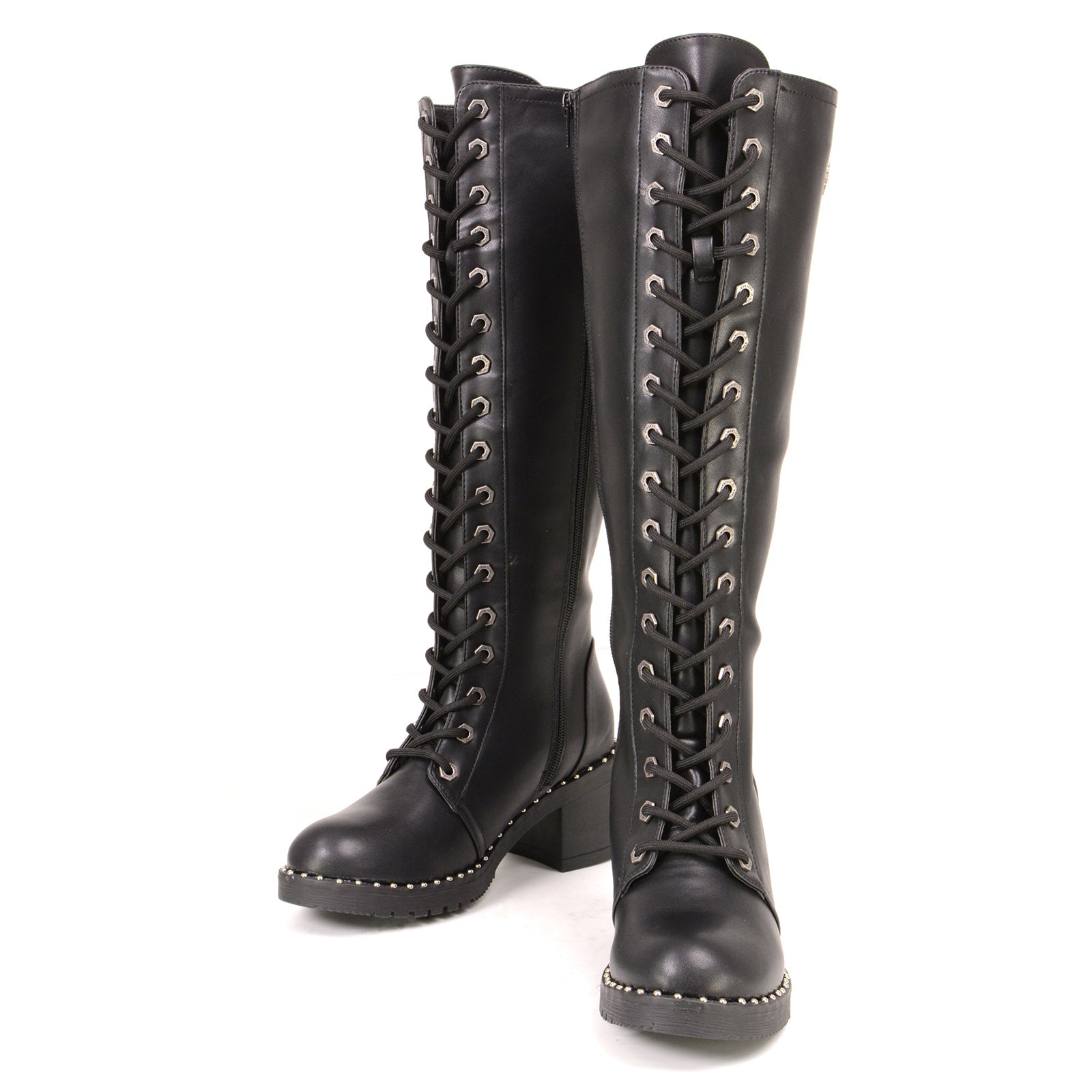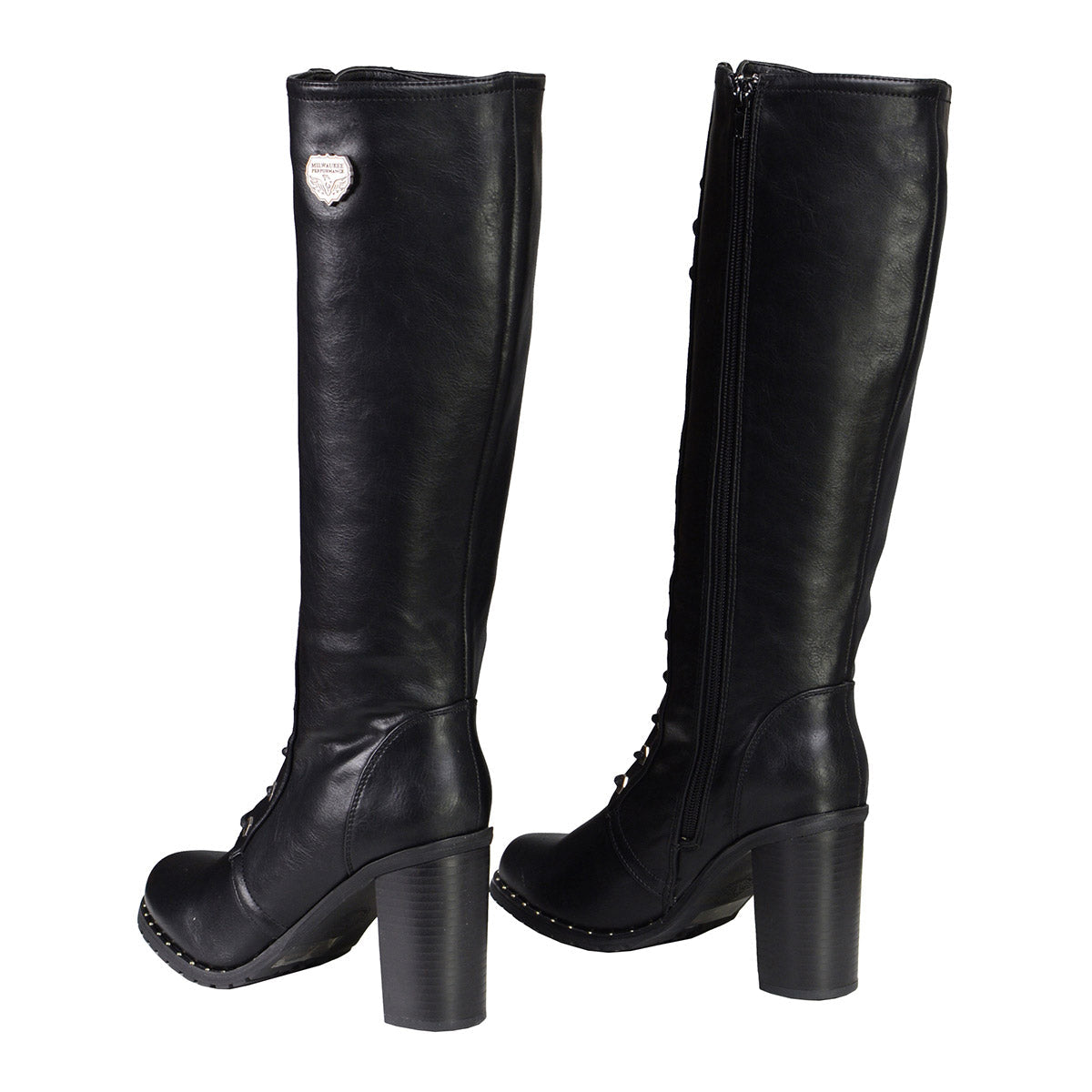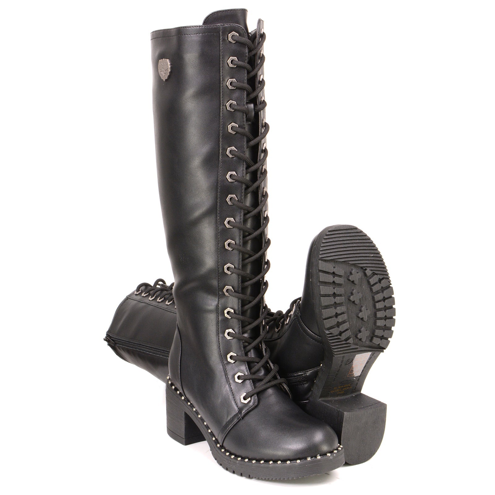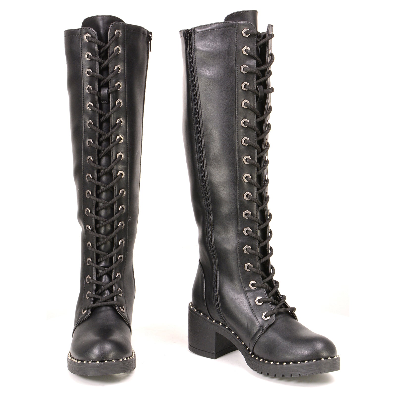 Milwaukee Leather MBL9442 Women's Black Lace-Up Tall Biker Fashion Boots with Platform Heel & Studs