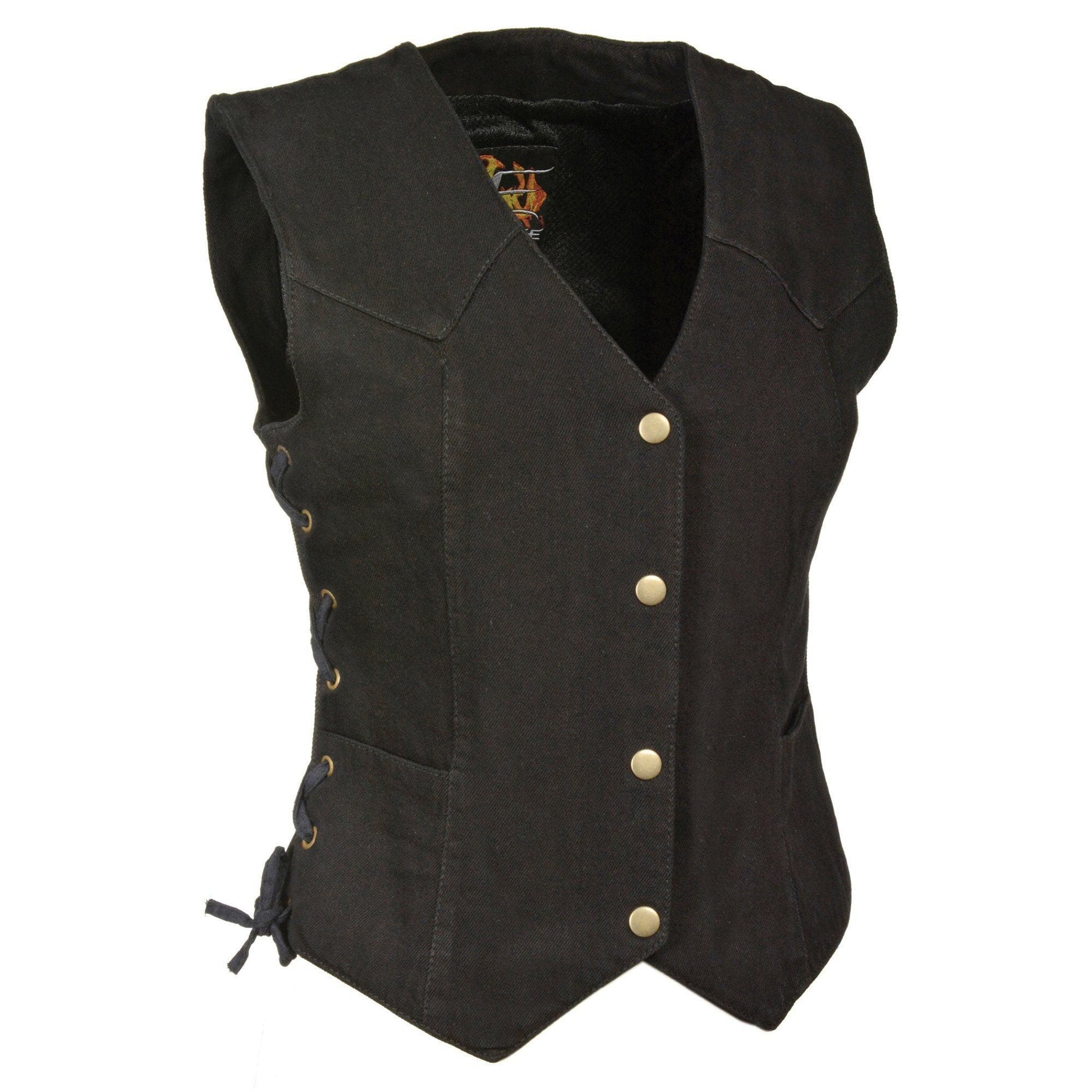 Milwaukee Leather MDL4001 Women's Black Denim Motorcycle Vest with Side Lace and 4 Snap Front