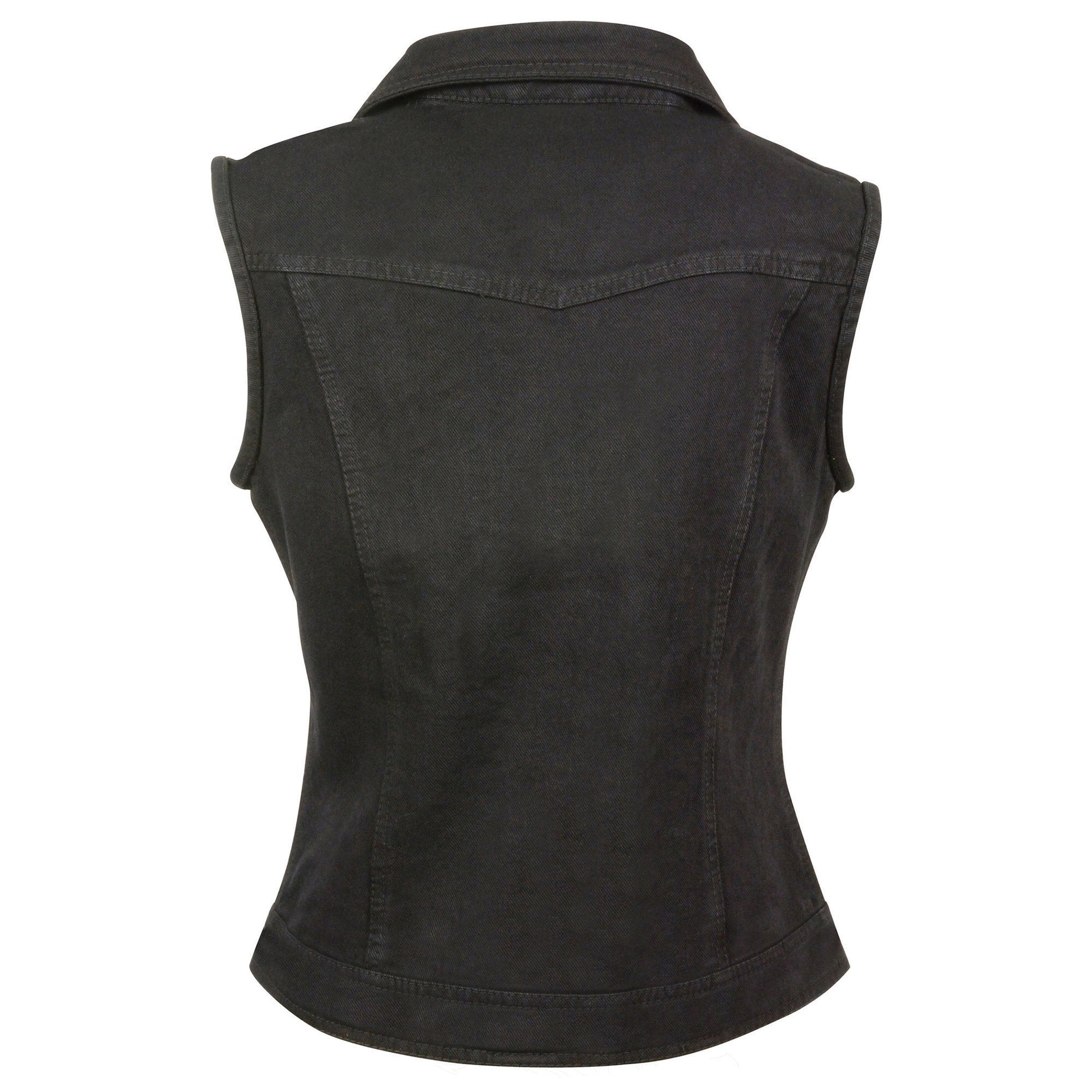 Milwaukee Leather MDL4030 Women's Black Denim Zipper Front Motorcycle Vest with Studded Spikes