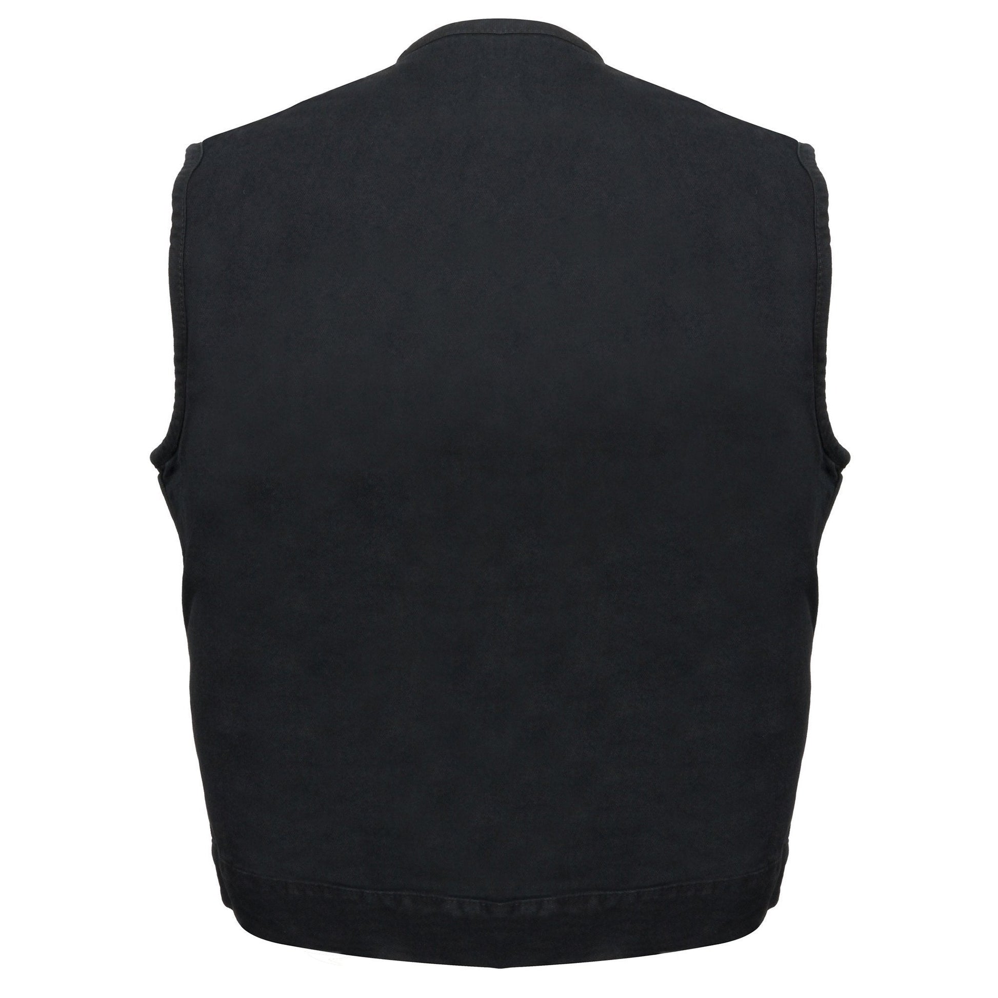 Milwaukee Leather MDM3001 Men's 'Covert' Black Denim Collarless Club Style Motorcycle Biker Vest w/ Dual Closure