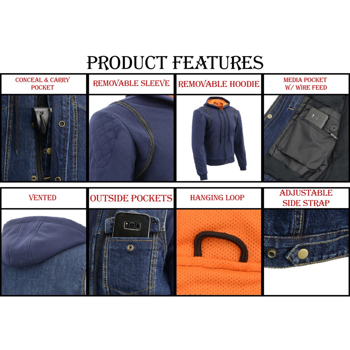 Milwaukee Leather MDM3020 Men's Black Denim '5-in-1' Club Style Vest with Removable Hoodie