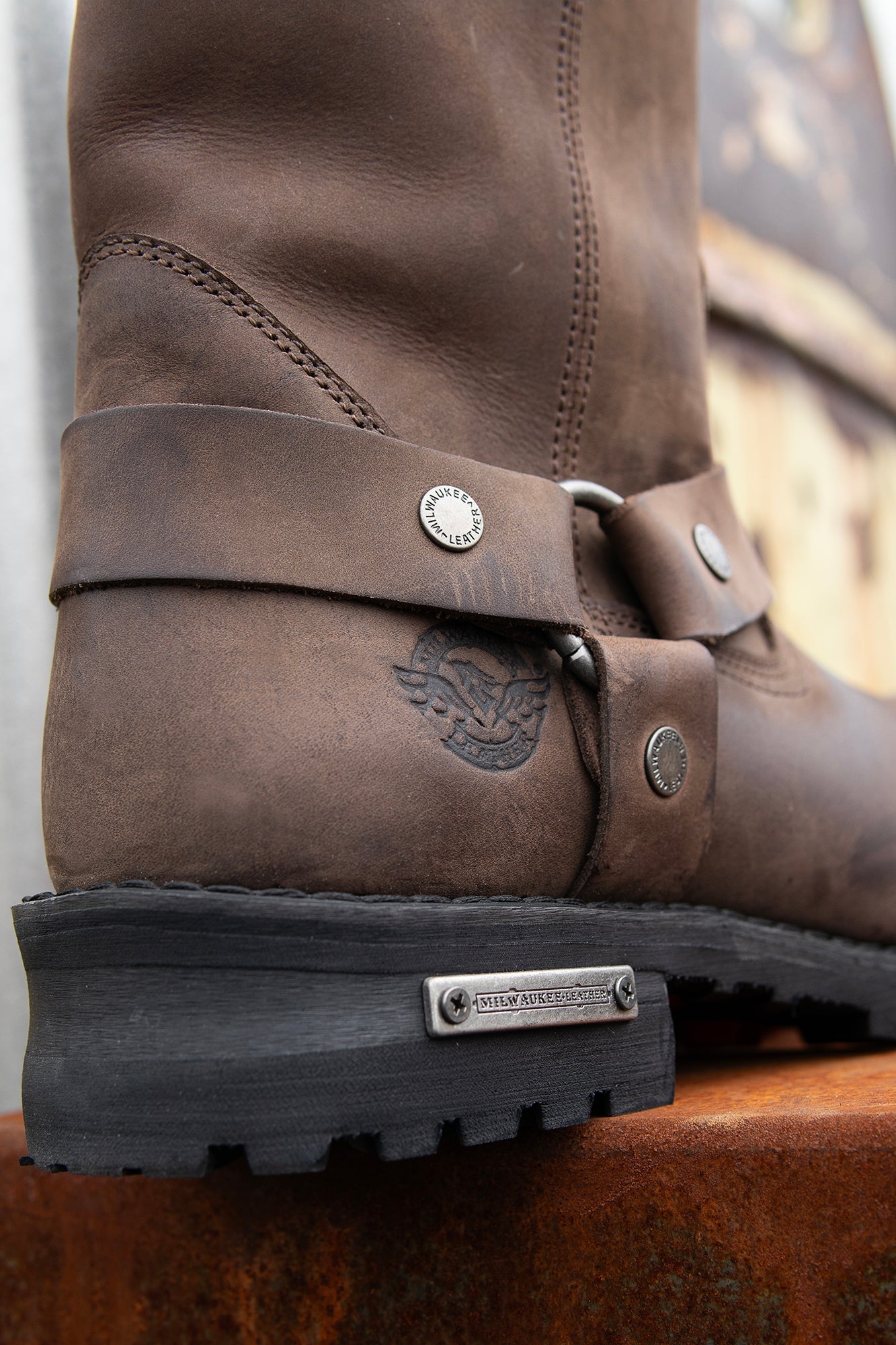 Milwaukee Leather MBM9062 Mens Classic 11 Inch Dark Brown Harness Square Toe Boots