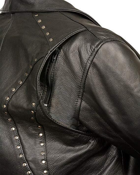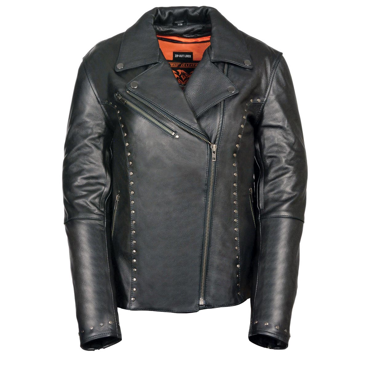Milwaukee Leather ML1948 Women's Classic Riveted Motorcycle Black Leather Jacket