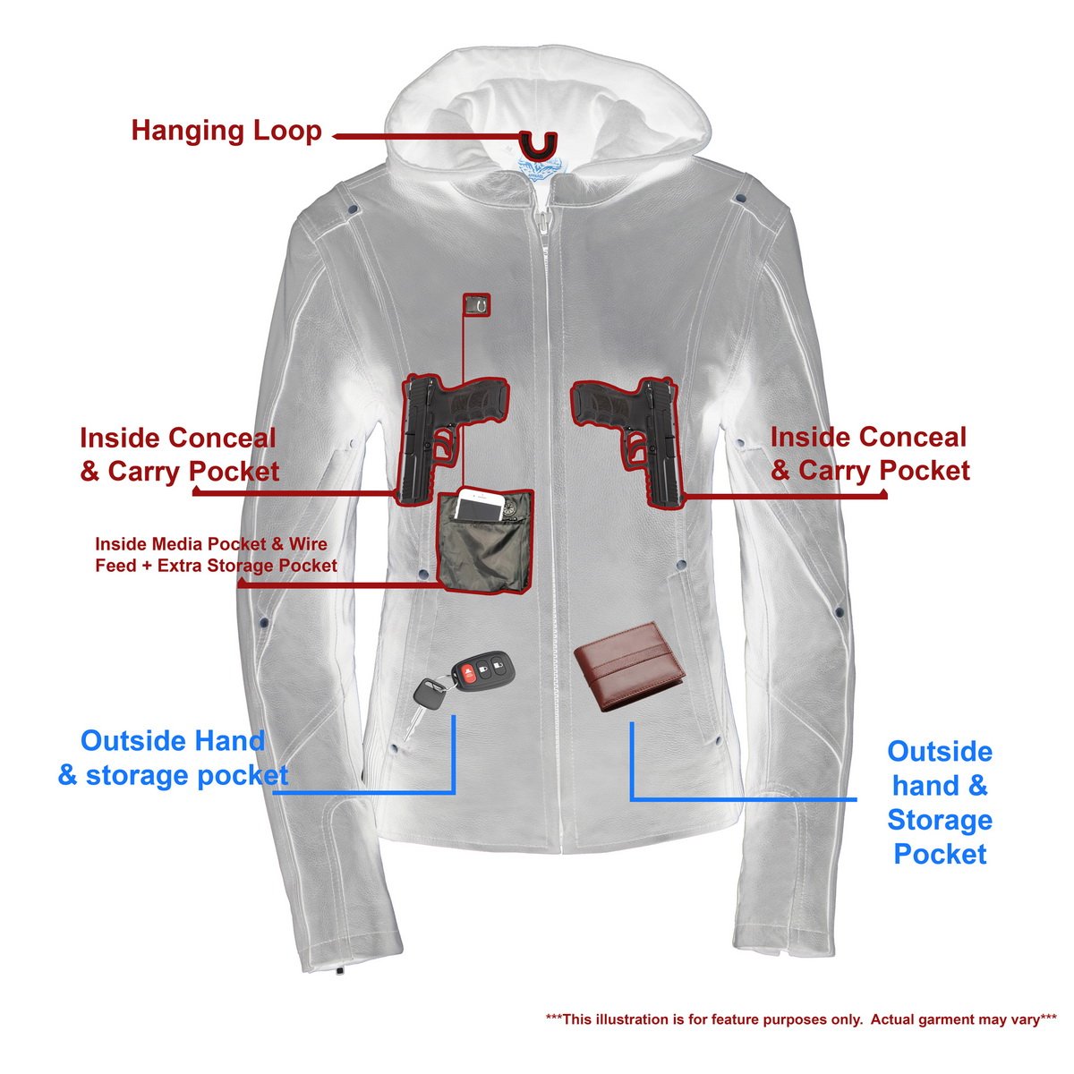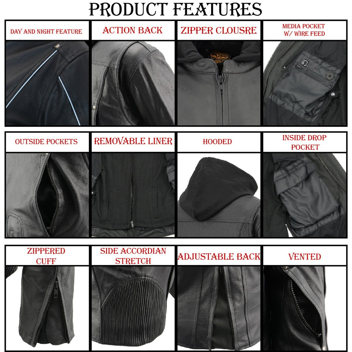 Milwaukee Leather MLL2555 Women's Black 3/4 Hooded Leather Jacket with Side Stretch