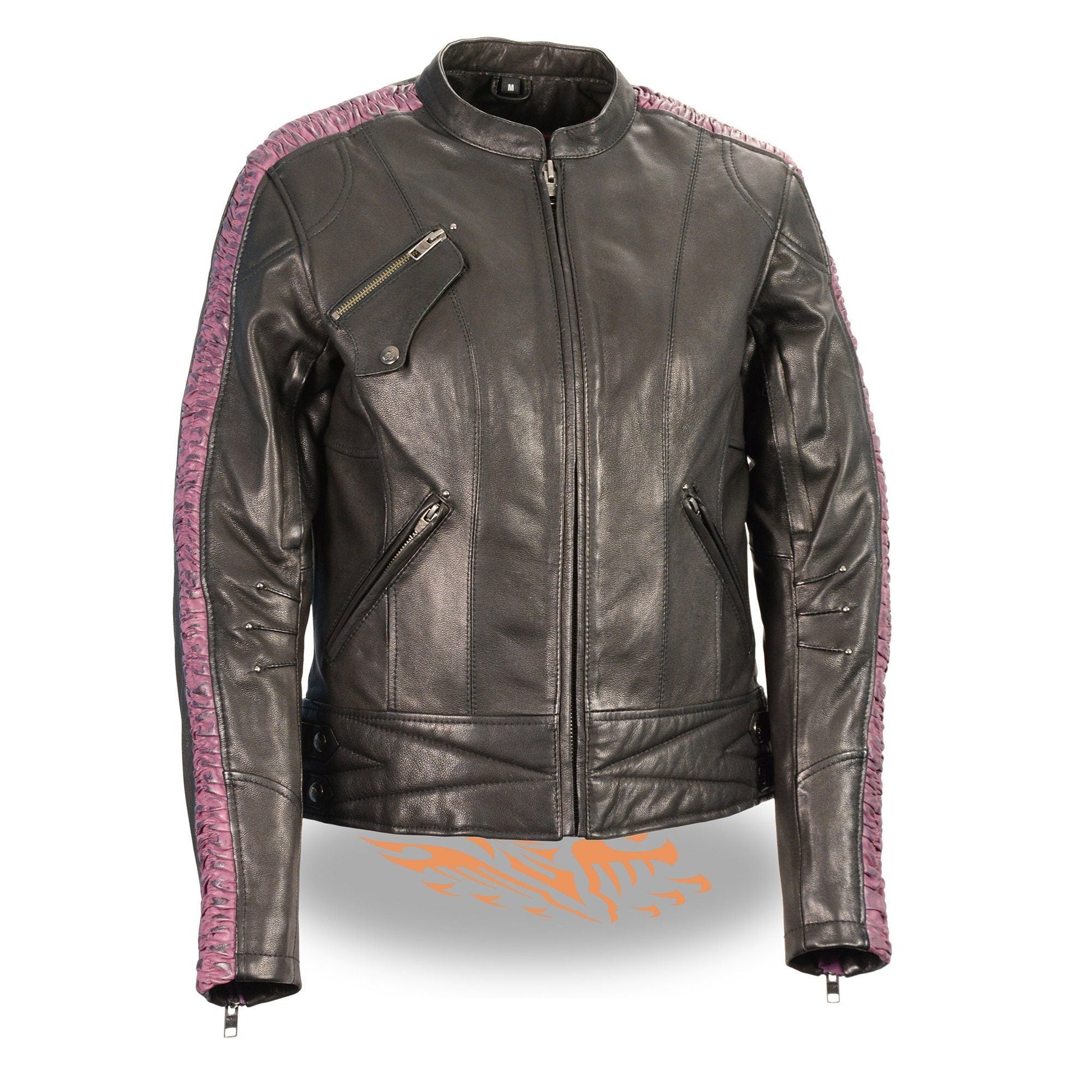 Milwaukee Leather MLL2571 Ladies Black and Purple 'Crinkled Arm' Lightweight Racer Jacket