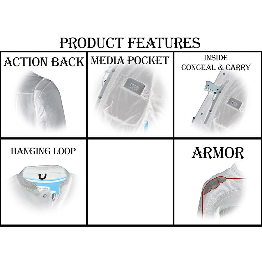 Ventilated System: Under Arm Vents on Each Side with Zipper Openings and Closures Making Breathable and Ventilated - Action Back Shoulder Panel for Added Movement/Flexibility While Riding